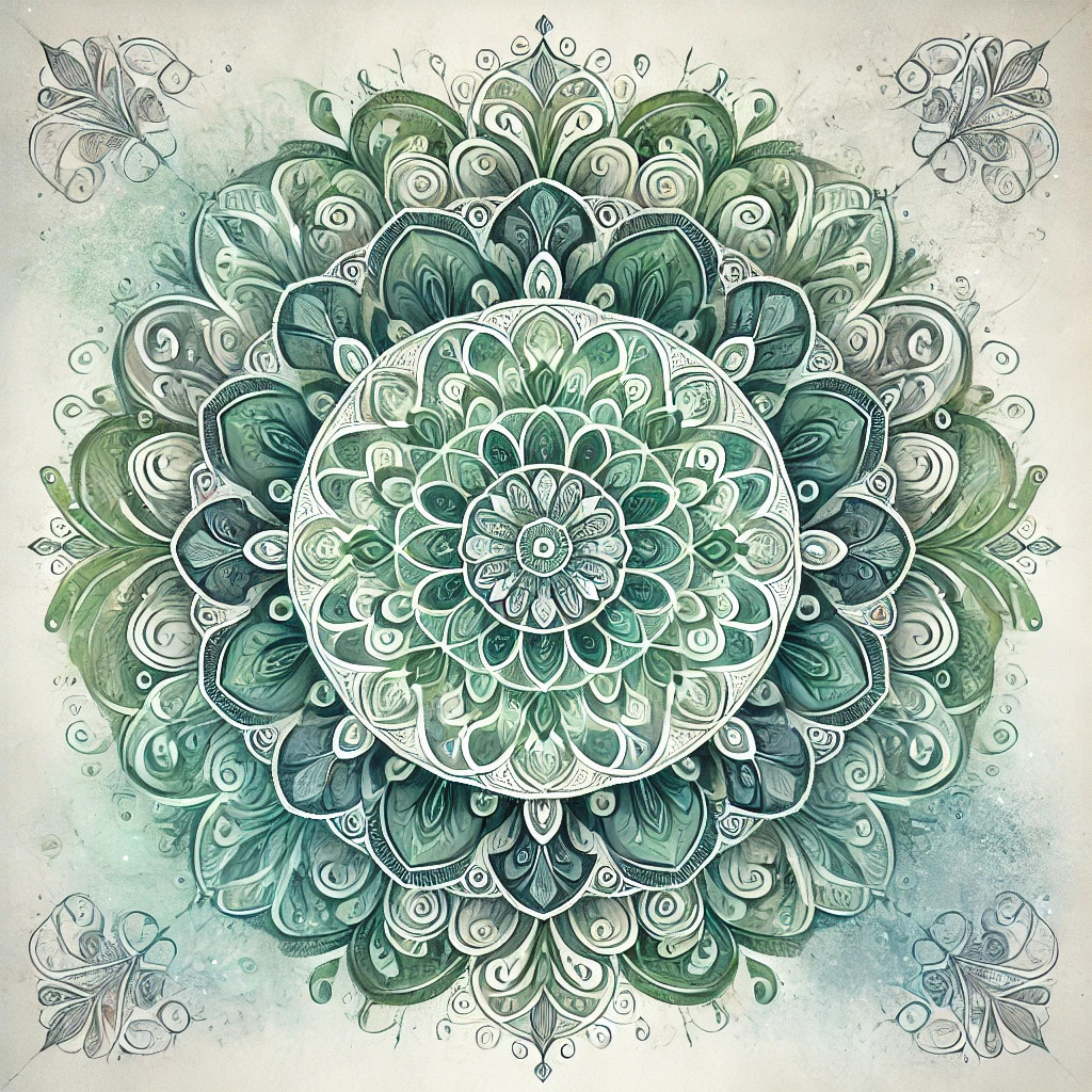 Serenity Mandala: Elevate Peace and Gratitude with Calming Greens and Blues