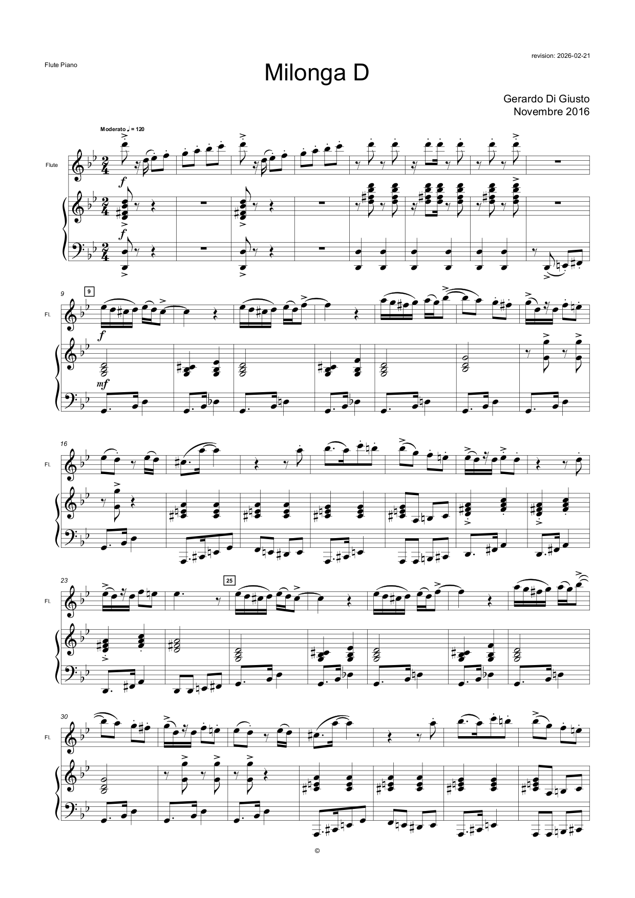 Milonga D version Flûte - Piano