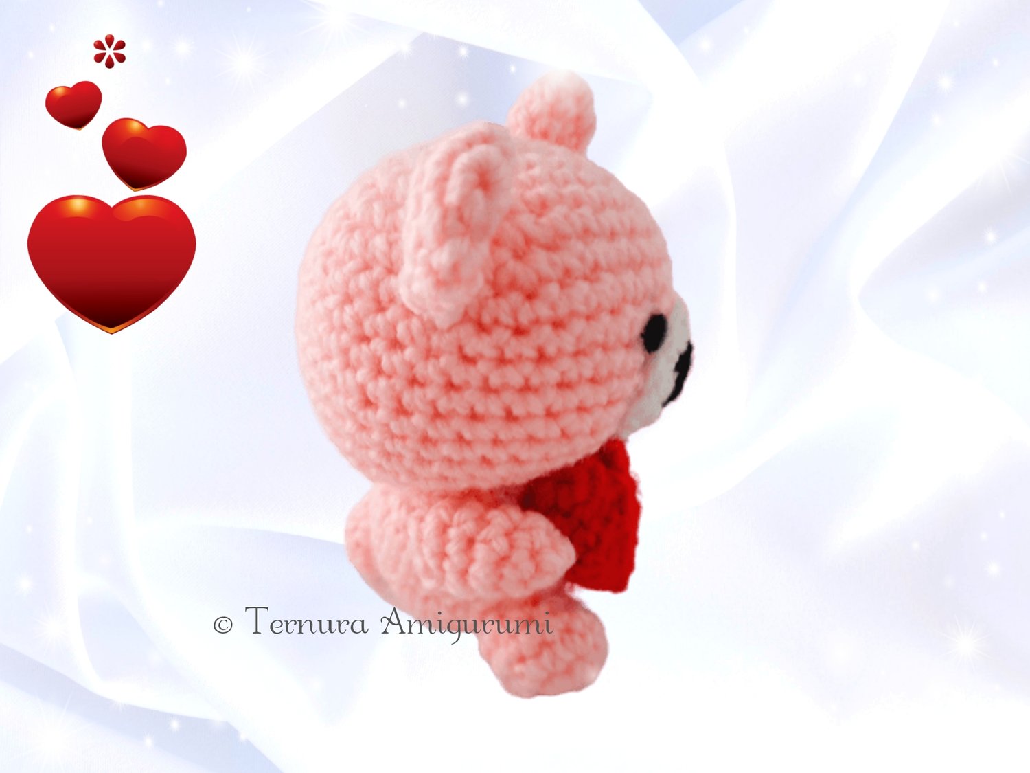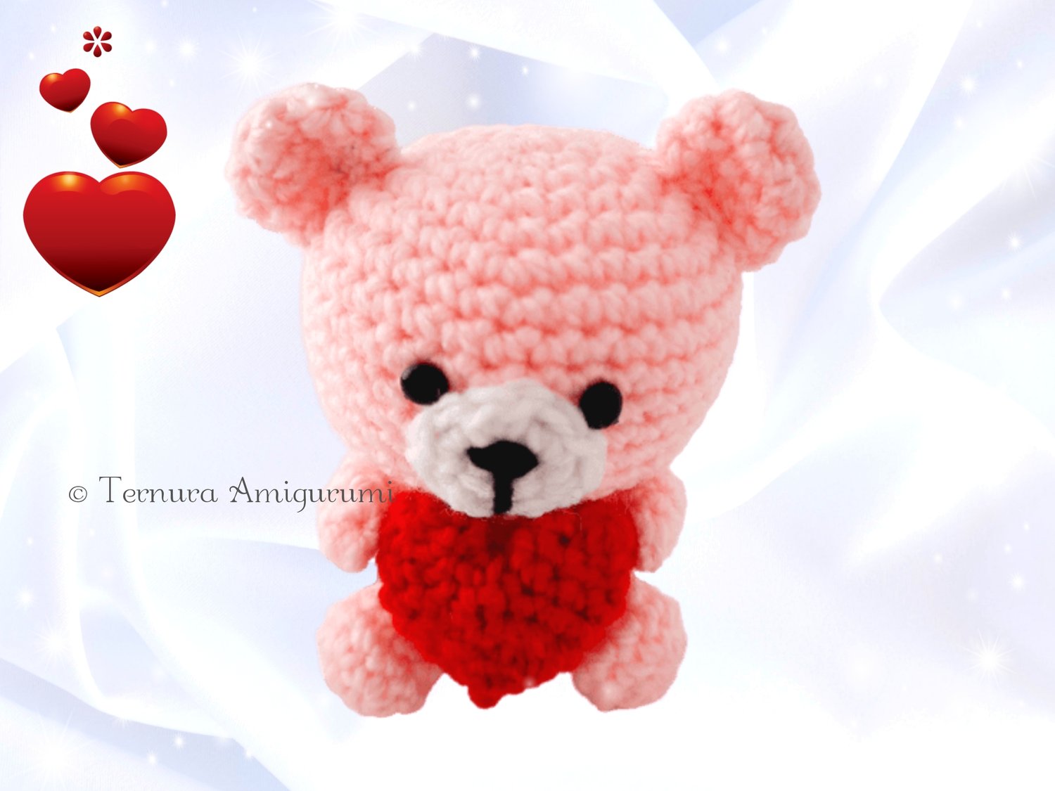 Who doesn't like teddy bears? This time I bring you an idea that you can implement very quickly and you will surely love it! You can use it to add gifts like chocolates, clothes or perfume, car or house decoration and also for kids. It is very nicely finished, much nicer than what can be seen in the photos! Get started with this crochet pattern right away! Its finished dimensions are approximately 9 cm. The size may vary depending on the size of the needle and thread.