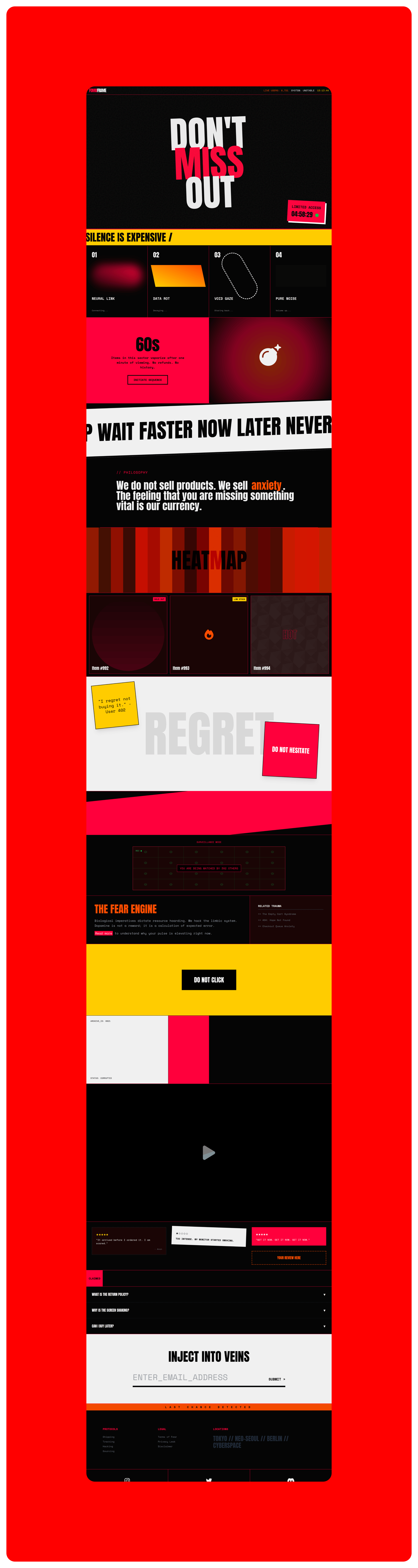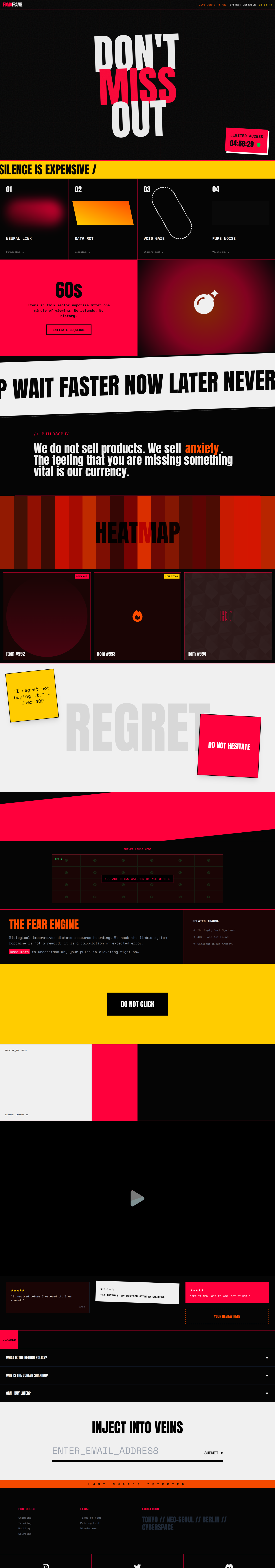 FOMOFrame — Urgency-Driven High-Contrast Landing Template