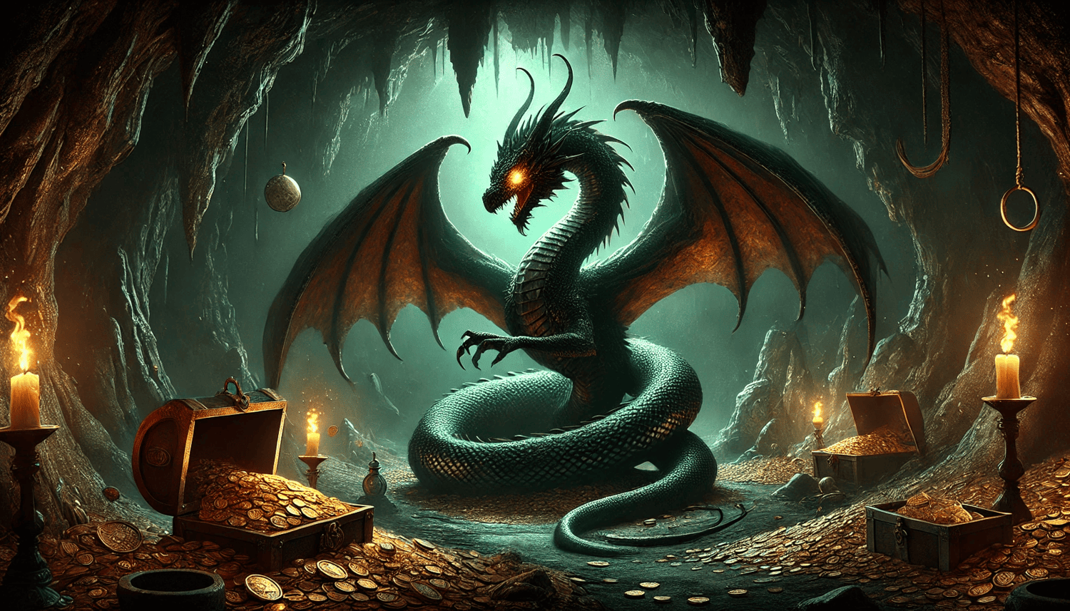 This captivating digital artwork portrays The Cuélebre, the legendary dragon from Asturian folklore, guarding its treasure deep within a mystical cave. With emerald-green scales, piercing golden eyes, and majestic wings, the Cuélebre exudes both power and mystery. Surrounding it, piles of gold coins, enchanted relics, and ancient chests create an immersive atmosphere of magic and legend. This artwork is a tribute to one of the most iconic creatures of Asturian mythology, perfect for lovers of fantasy, folklore, and mythical beasts.
