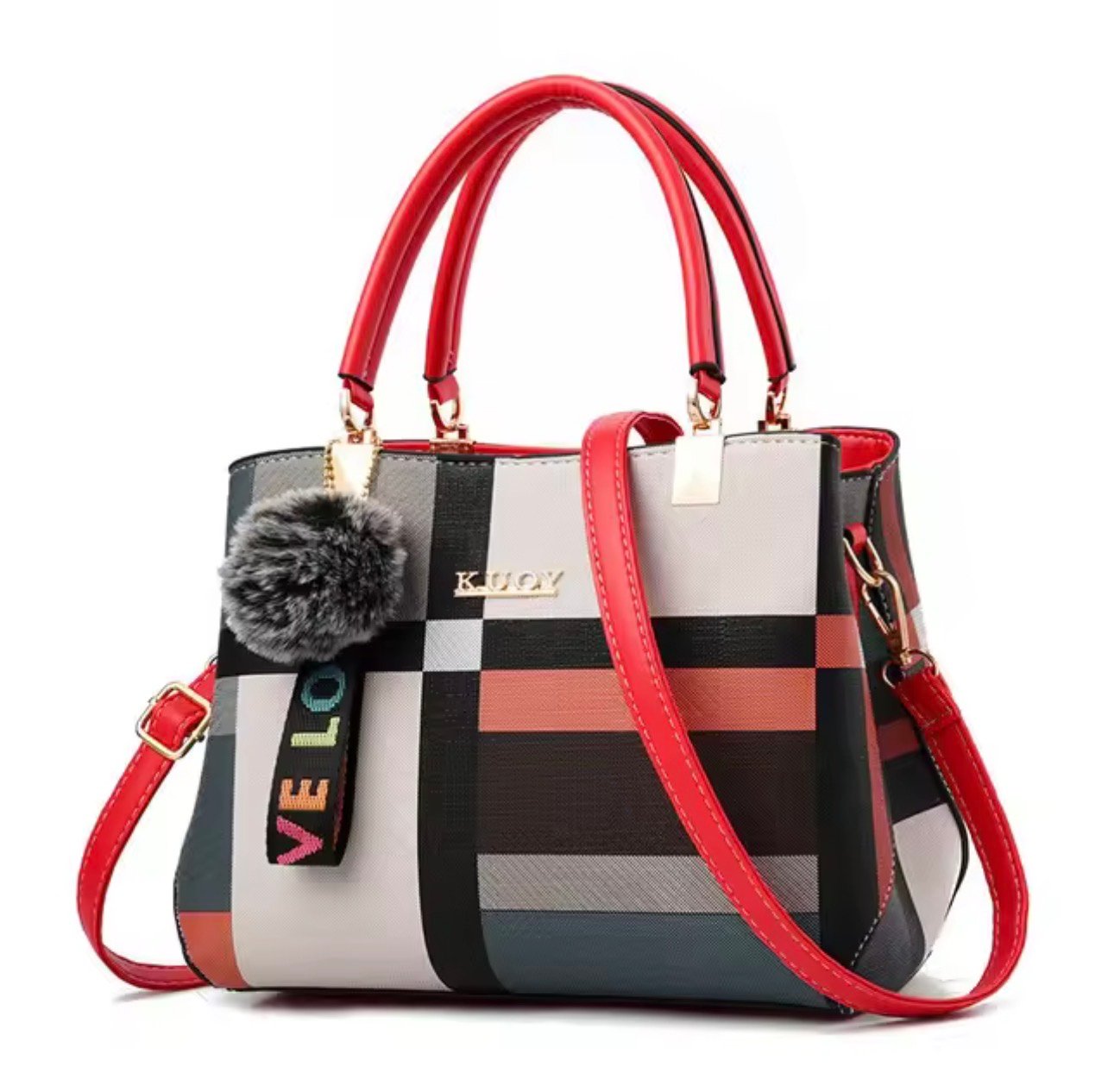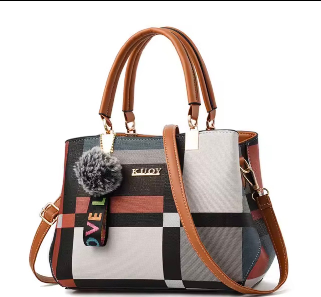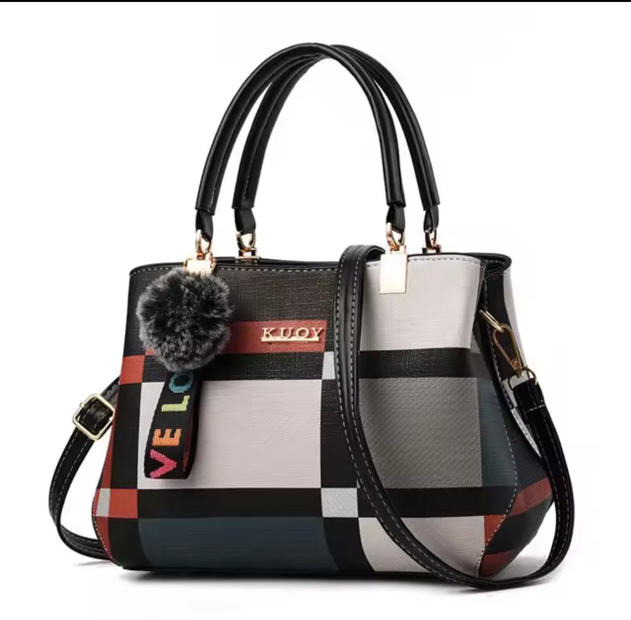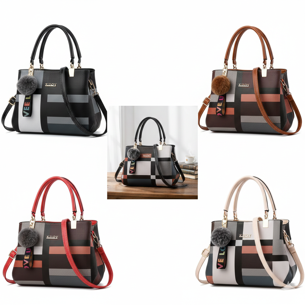 Elevate your everyday style with this chic plaid PU leather handbag, designed for modern women who love elegance and functionality. Featuring a structured silhouette, durable top handles, and a detachable shoulder strap, this versatile satchel easily transitions from day to night. The stylish plaid pattern and soft pom charm add a fashionable touch, while the spacious interior keeps your essentials organized. Perfect for work, shopping, travel, or casual outings, this handbag combines sophistication with practical convenience.
