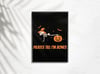 Featuring a smiling skeleton in a witch hat doing Pilates next to a pumpkin, this Bone to Tone print is perfect for fitness lovers who enjoy a bit of Halloween humor.