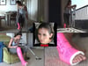 Pillar descends some stairs in high open toe heels when she trips and hurts her leg. She calls for help after limping back into the house. In the next scene, she is back home resting in a signed angled LLC. She hops into the kitchen to tidy up because it’s impossible to rest her casted leg on the floor while she is standing. She finally crutches upstairs to rest on her bed and read before hopping up to do some work on her computer while she wiggles her big toe. Nice closeups throughout. In this second part Pillar hops to her closet to get some sweats and a flip flop on and then crutches over to her dining table where she tries to get her leg comfortable. Some nice closeups. Then she tries to get comfortable on crutches by crutching around her balcony before resting on a chair to watch TV and engage in some foot play.