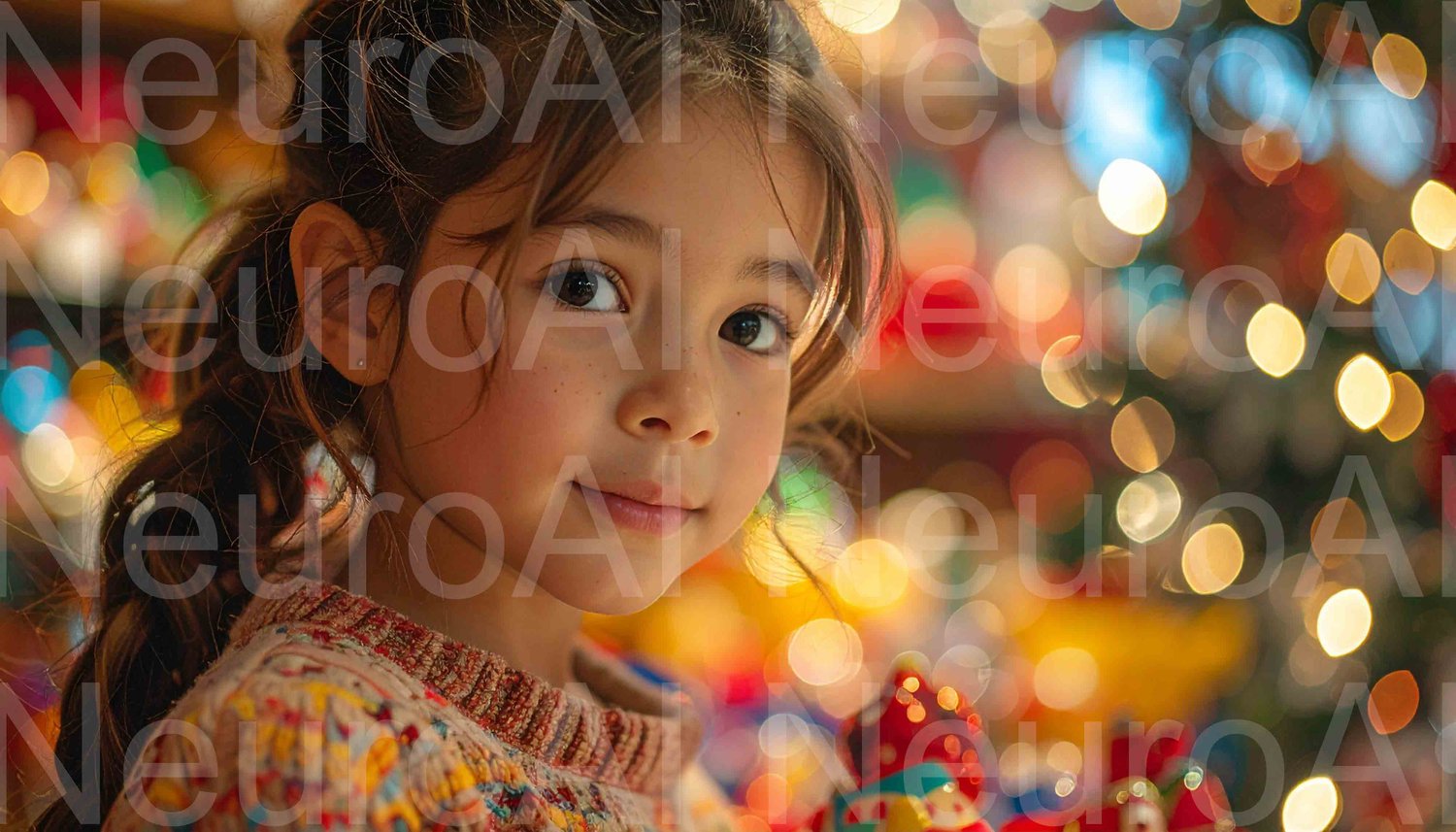 Joyful child with sparkling festive lights, pure holiday magic