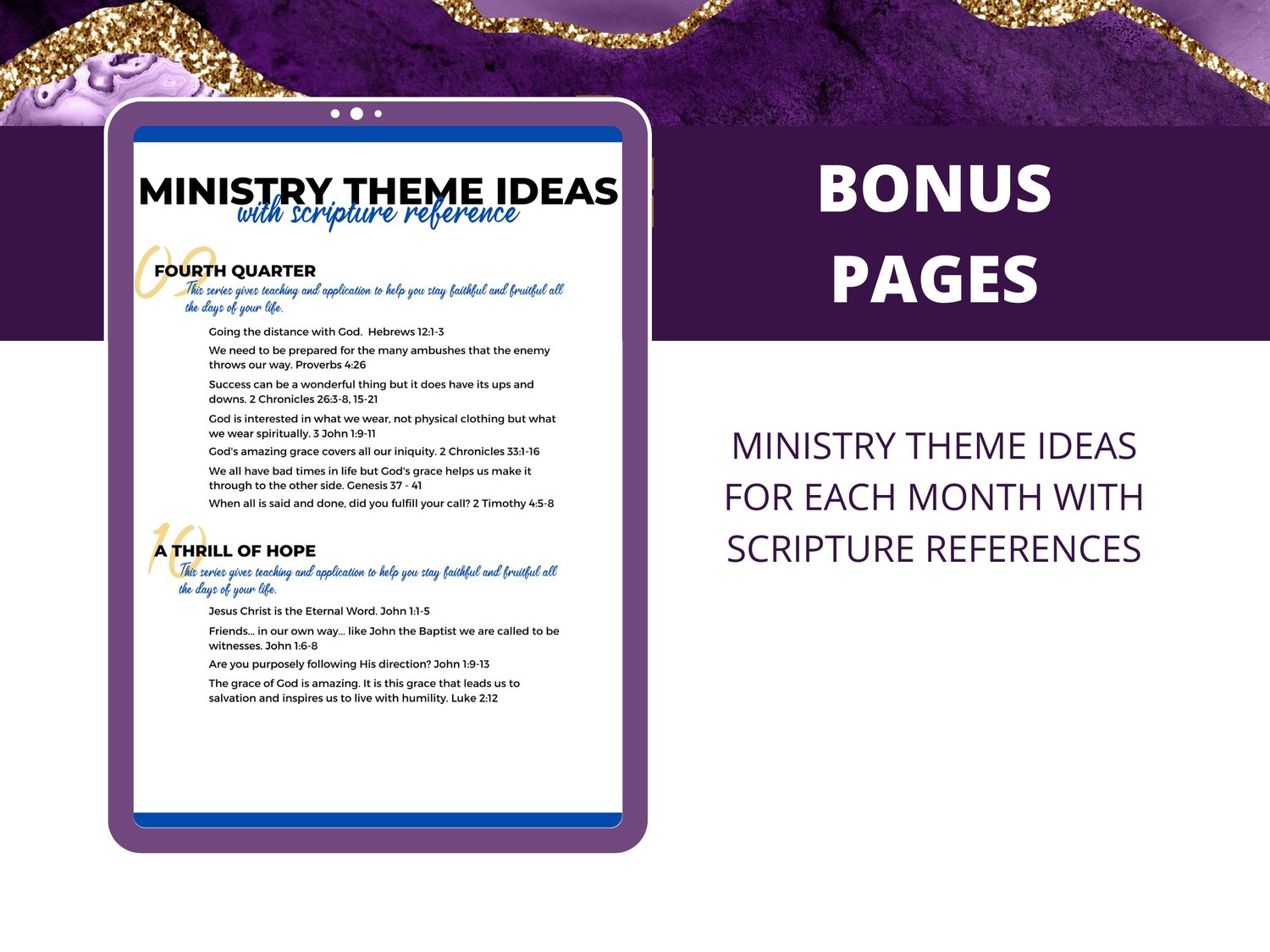 With this planner, you'll be ahead of the game, mapping out your next 12 months of engaging content. This isn't just a planner; it's your blueprint for a successful online ministry.