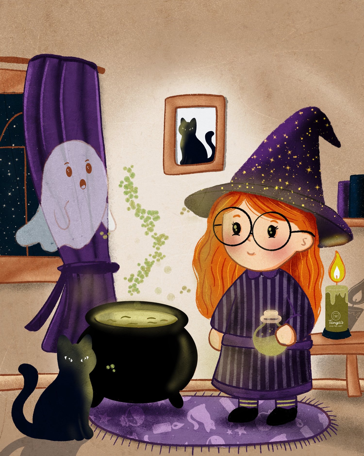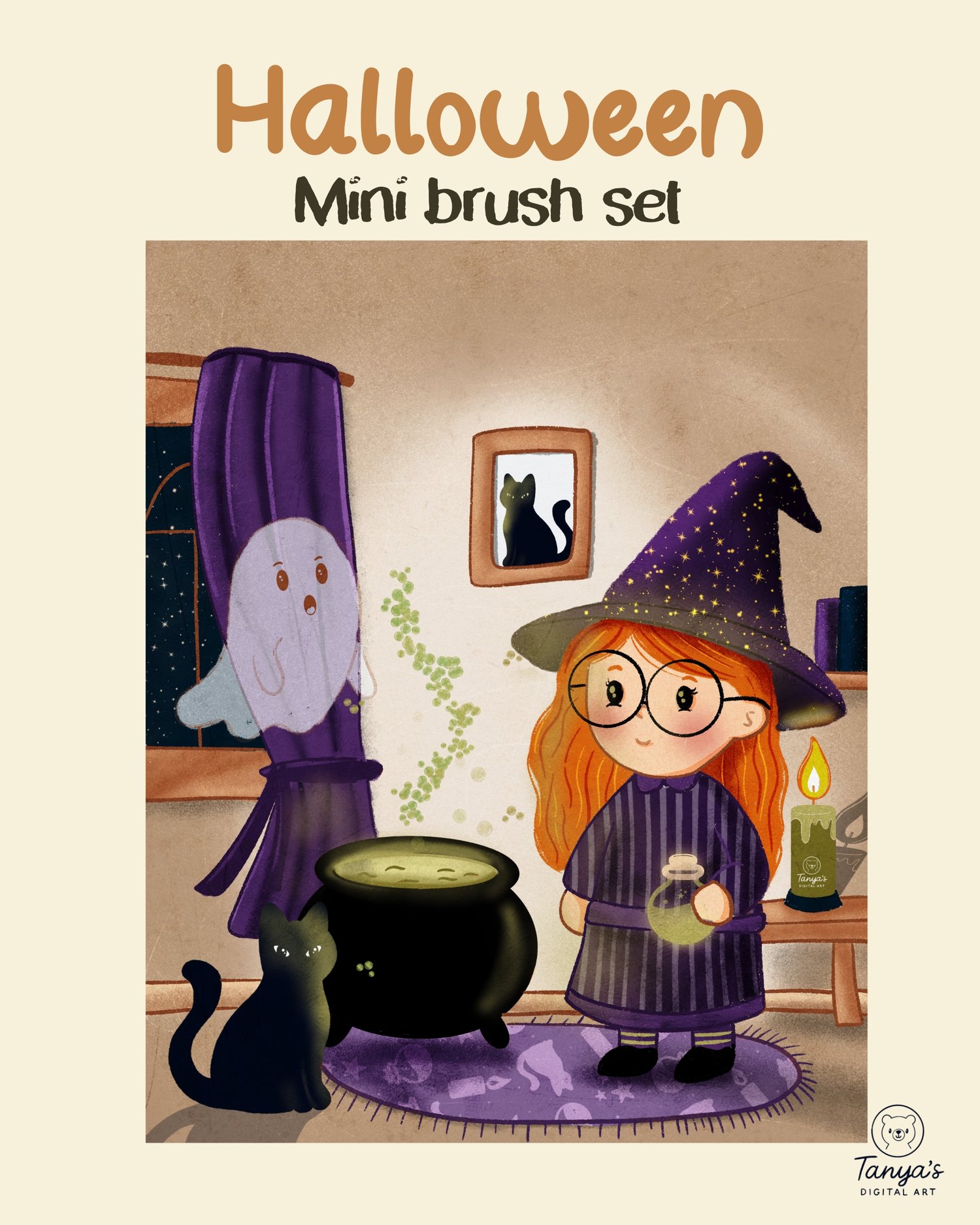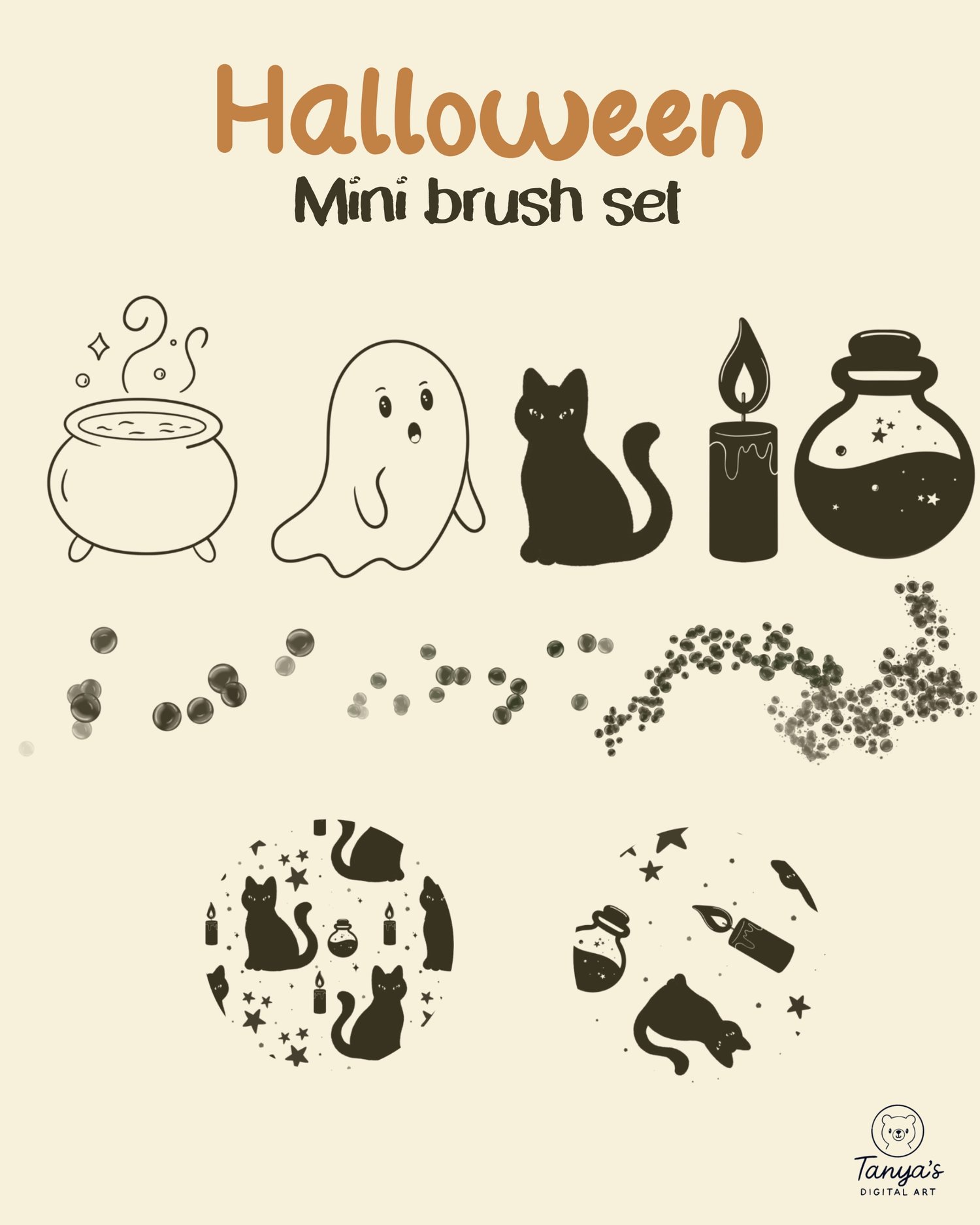 A playful set of Halloween stamp and pattern brushes—perfect for cozy witchy scenes, cute ghosts, bubbling brews, and magical backgrounds. Made to inspire fun October illustrations!