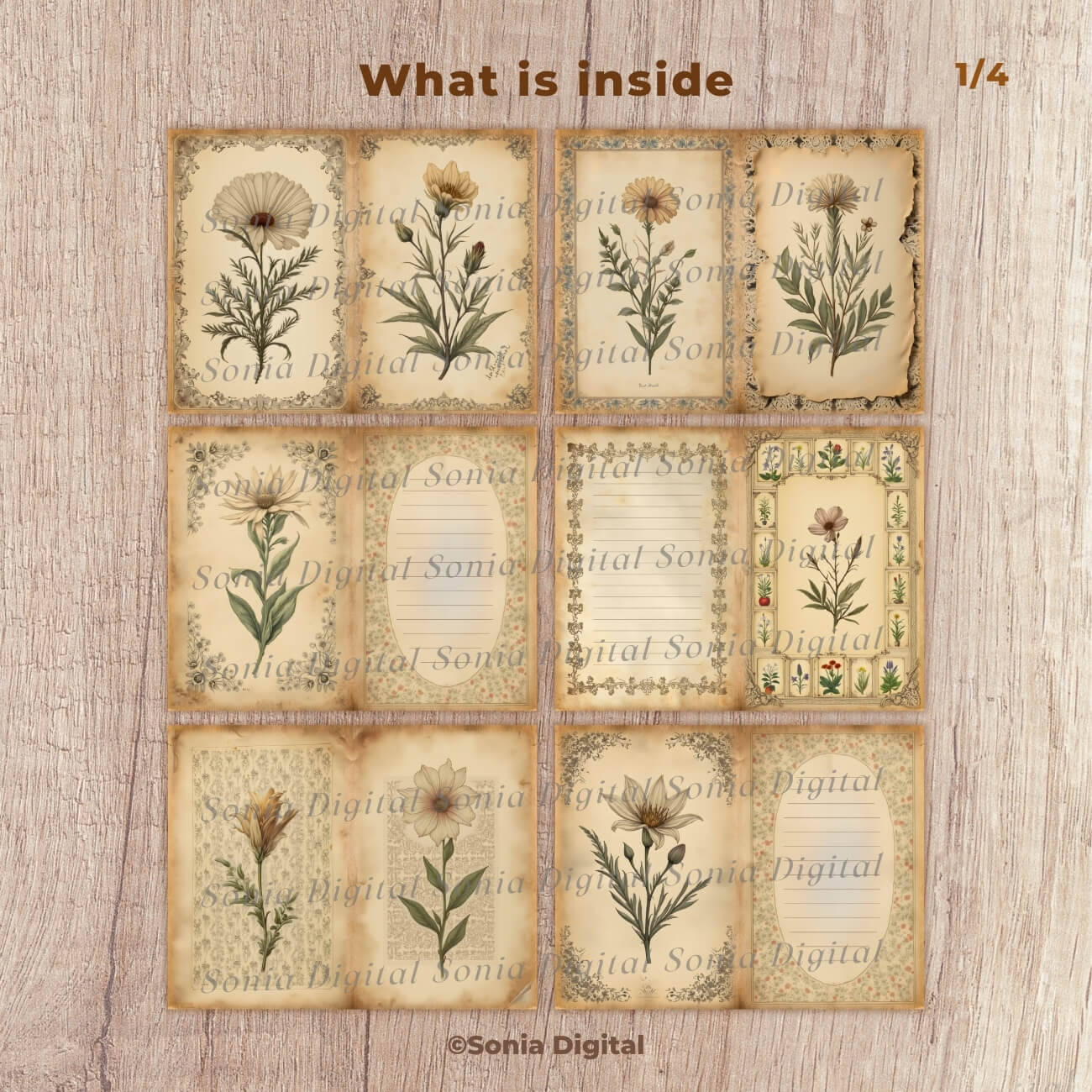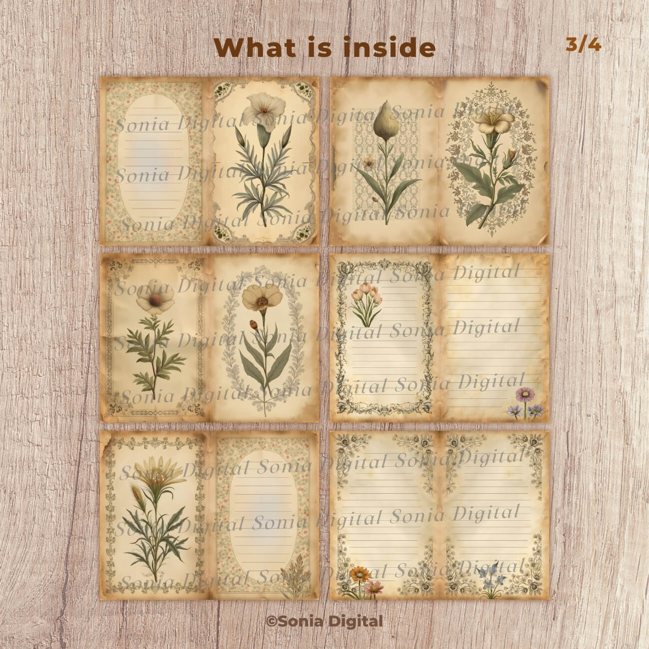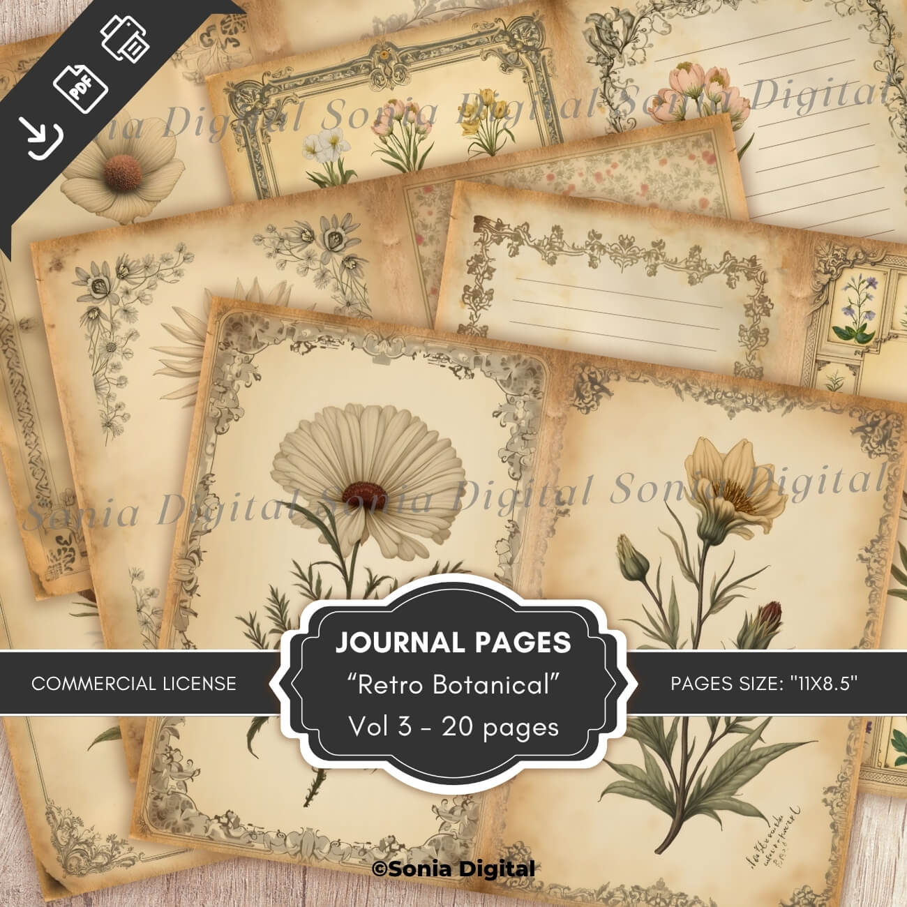 🔸20 printable Journal Pages, “Retro Botanical” Collection (Vol 3), in Letter size 11”x8.5”, in Landscape format. All pages are sold Watermark-free. Commercial use license included*.