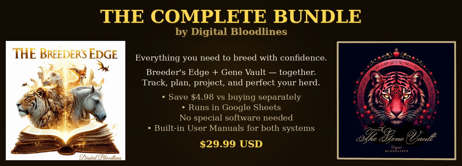 Whether you're just starting a breeding project or managing a full herd across multiple generations, this bundle gives you everything you need to breed with confidence and purpose.