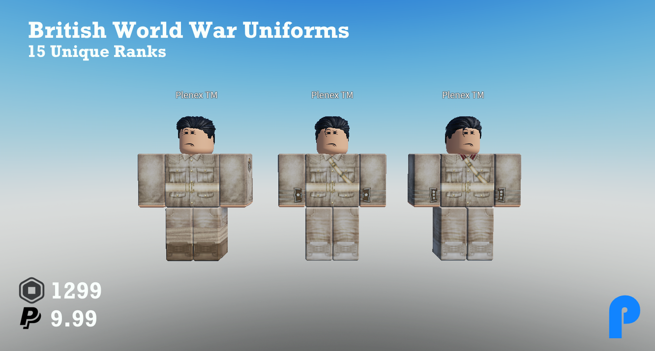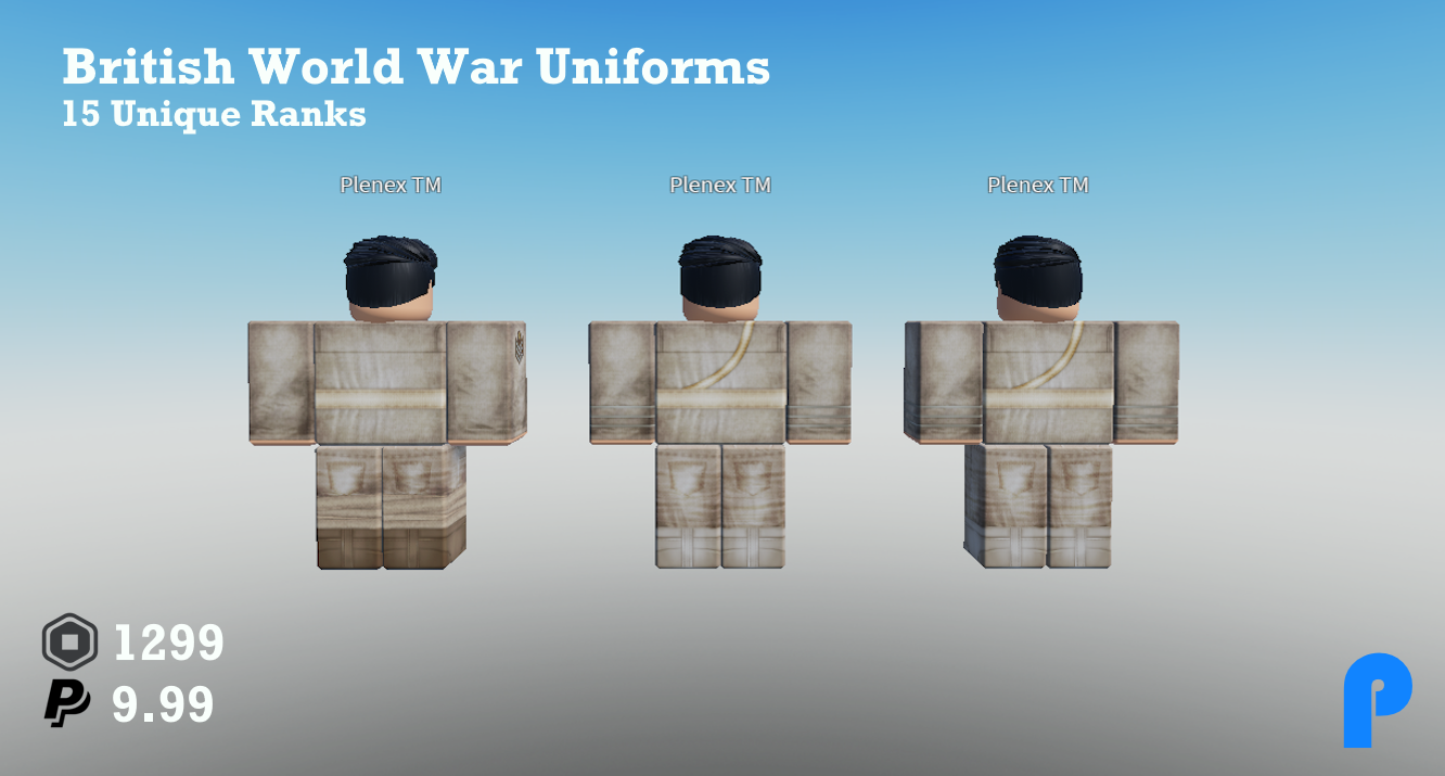 An incredibly detailed set of British world war uniforms. Going from private all the way up to field marshal, deck out your group with the finest quality garments.