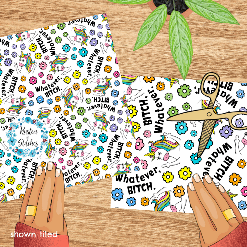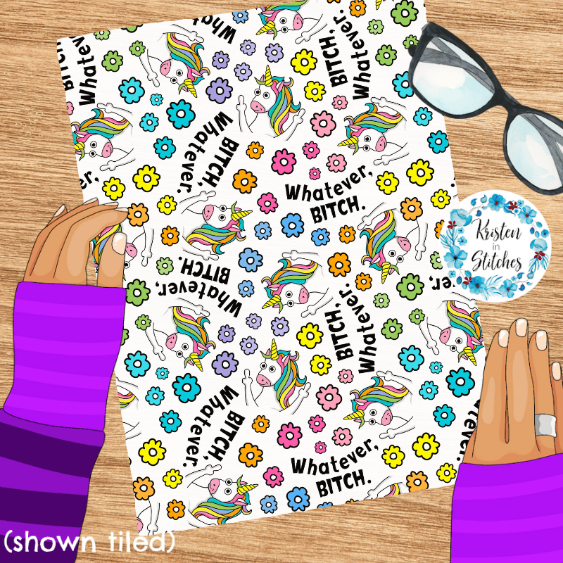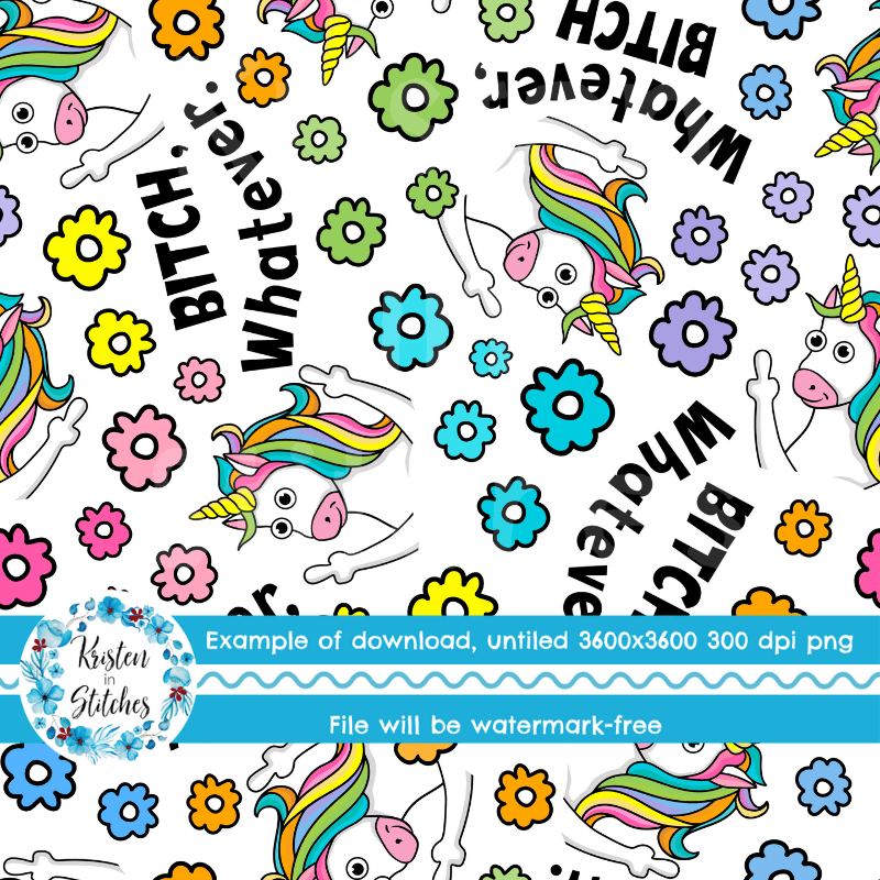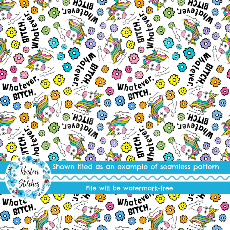 Whatever Bitch Sarcastic Unicorns Seamless Pattern, Middle Fingers