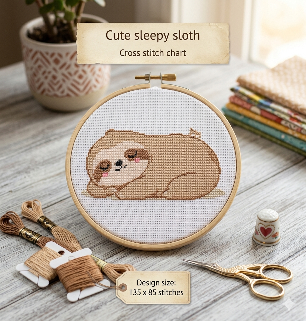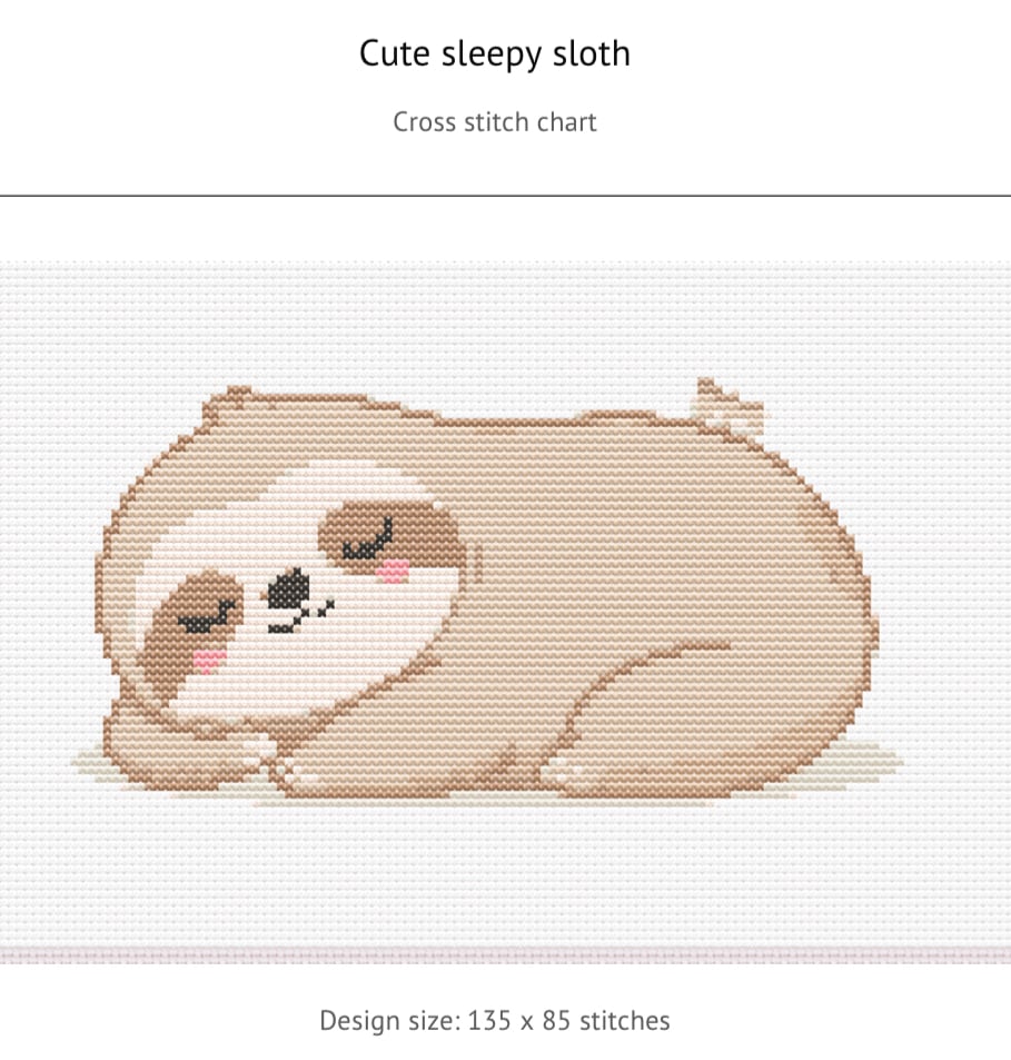 Cute Sleepy Sloth Cross Stitch Pattern – Cozy & Beginner Friendly