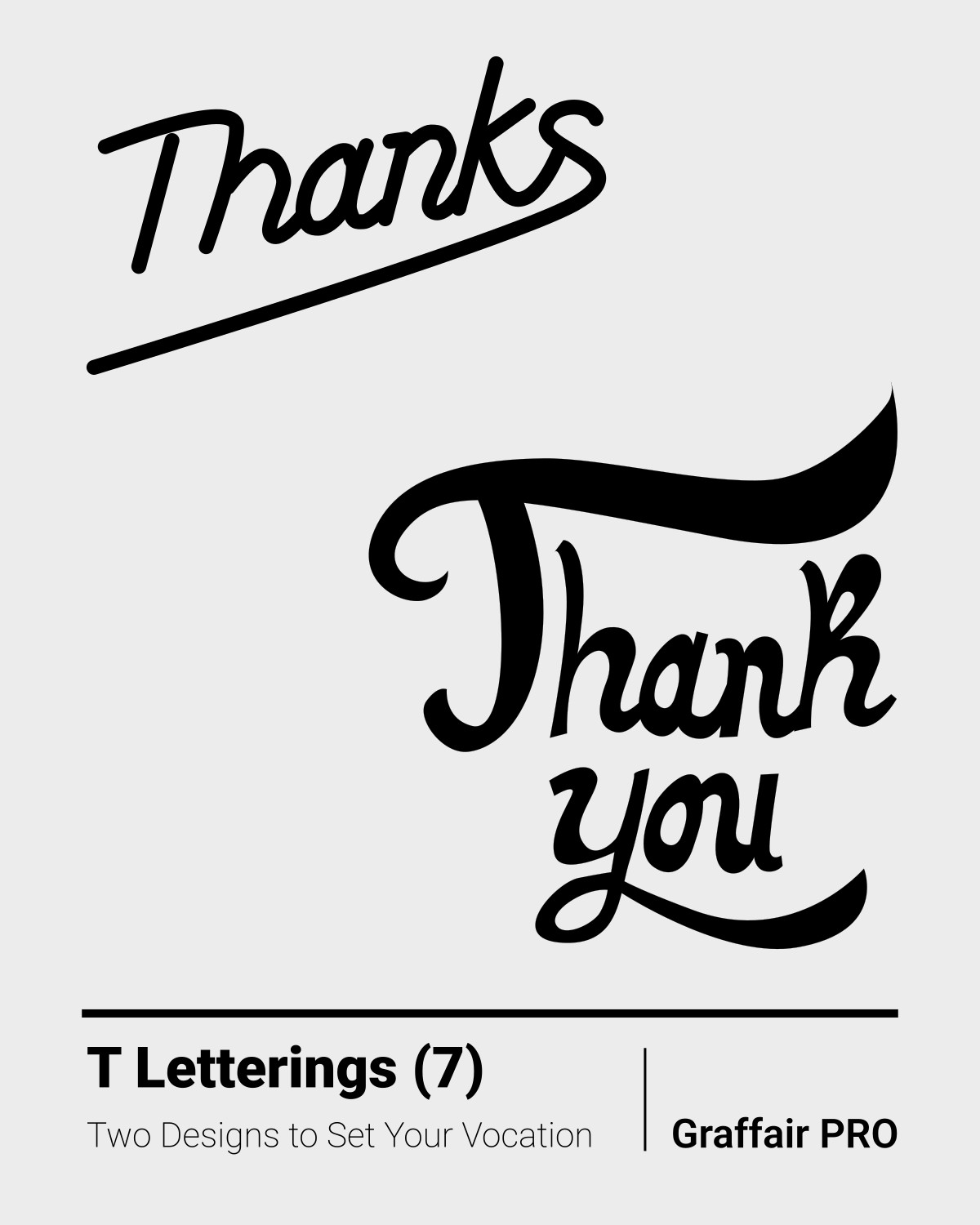 T Letterings (7): The 7th set of two original "T" logo lettering designs to edit and evolve your typography on your visual branding project. These letterings are part of the "800 SVG Letterings" bundle.