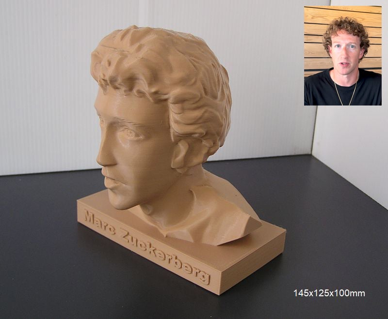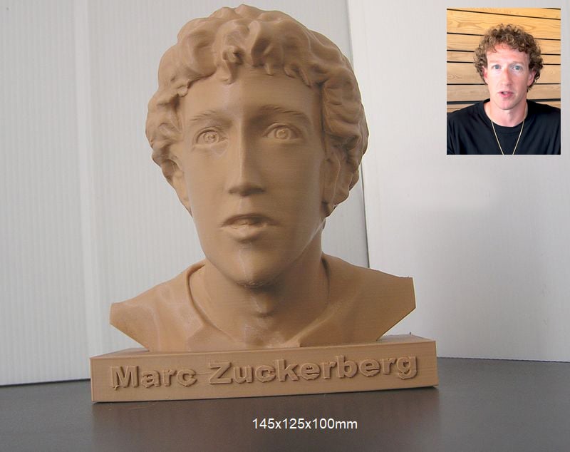 Bust statue of Marc Zuckerberg, these STL and Gcode files have been created to be printed in various colors with any FDM type printer. The color changes have been made with the Elegoo Neptune 3 Pro printer, but they can be printed on any printer.