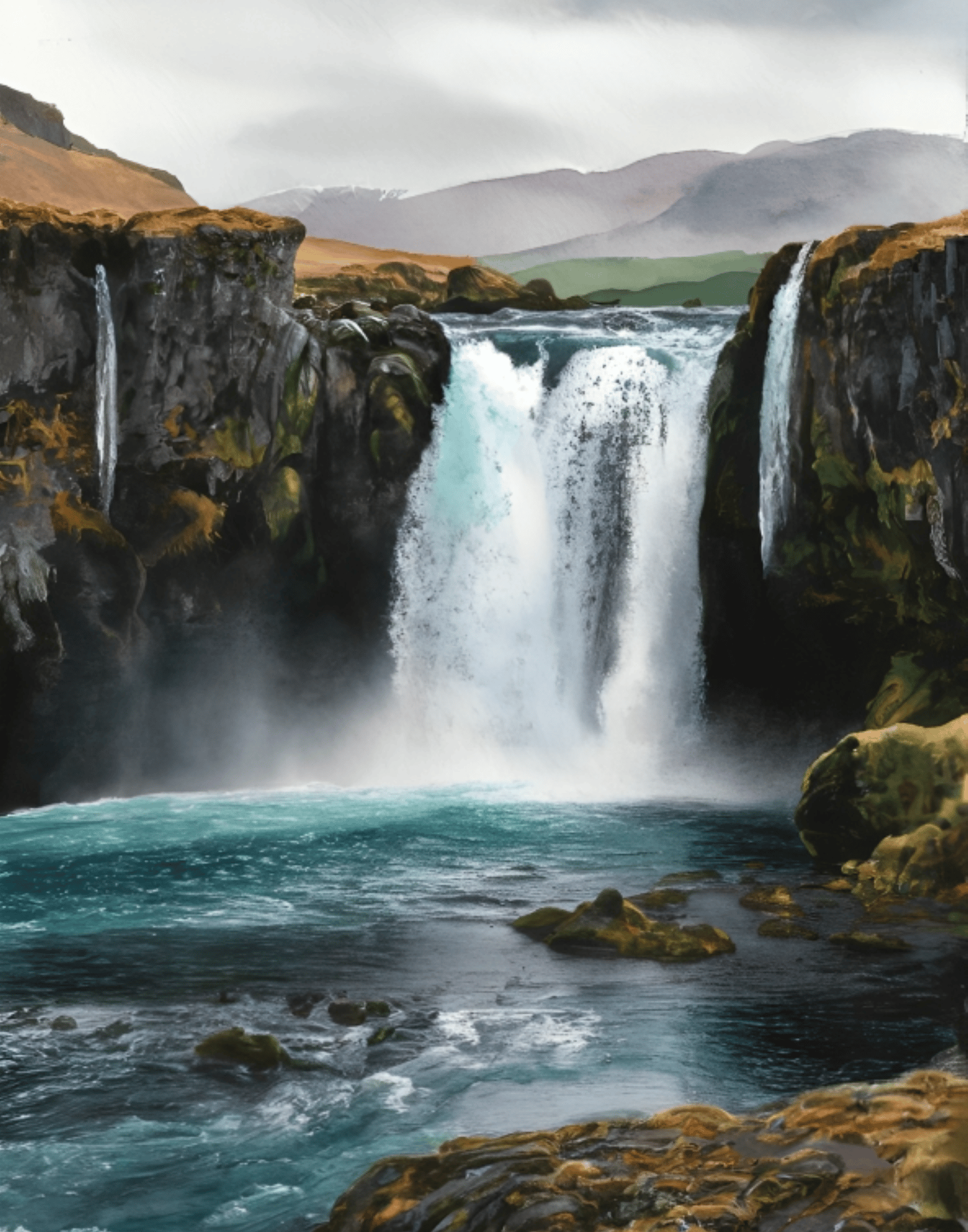 Waterfall, Vintage Landscape Painting, Cool Lovely Nature, Best Waterfall, Vintage Waterfall, Sunset, Beautiful Sky Painting..