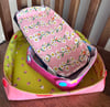 The Makers Tray is a beginners pattern, instant download. This tray will take around an hour to make a basic version. You can make it in many different materials. It has fastenings on every corner, I used plastic snaps but you could try a variety of different fastenings.