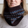 The deep colours used in this cowl create a moody feeling, expressing perfectly how many of us feel after several months of a cold dark winter. Choose any three colours of worsted weight yarn for your Moody Cowl to express your winter feelings. The slipped stitch colourwork pattern is easy to work. The slipped stitches create a dense fabric and the yarn carried along the inside adds extra thickness making it cozy and warm. This cowl is worked in the round from the bottom up. Instructions are written. See also: Moody Shawl.