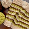 Skills required: Working in the round, changing colours for stripes, slipping stitches. Stitches used: k, p, sl.