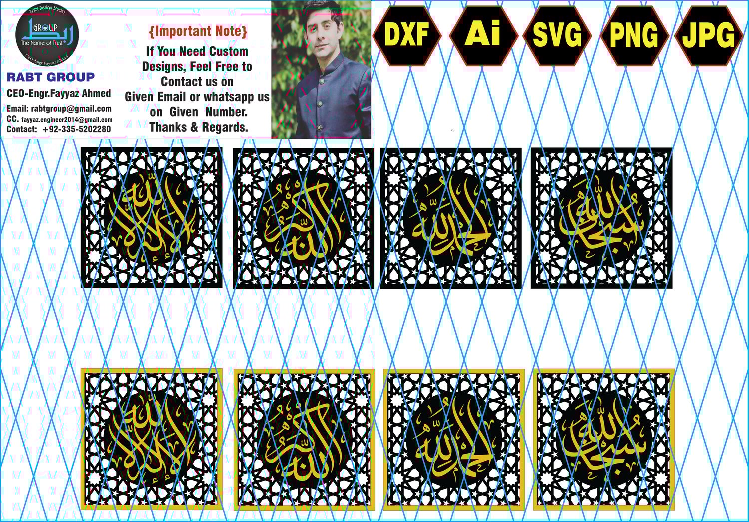 At Rabt Group, led by CEO Engr. Fayyaz Ahmed, we offer premium Islamic digital designs tailored for CNC cutting, artistic engraving, and decorative wall art.