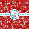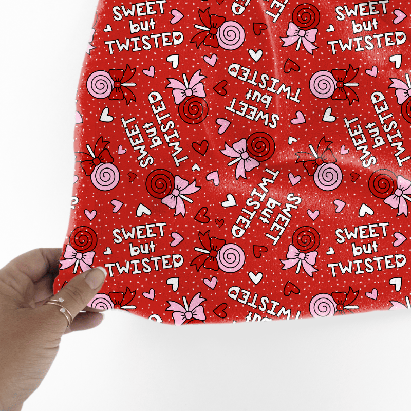 Sweet But Twisted seamless pattern with candy swirl lollipops, coquette bows and hearts in red and pink.