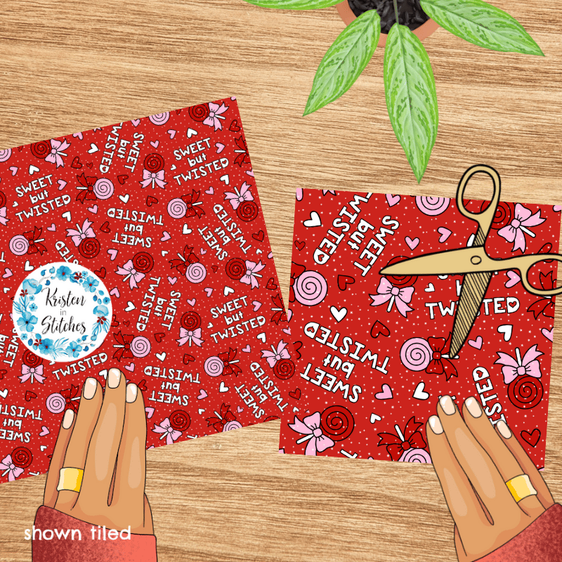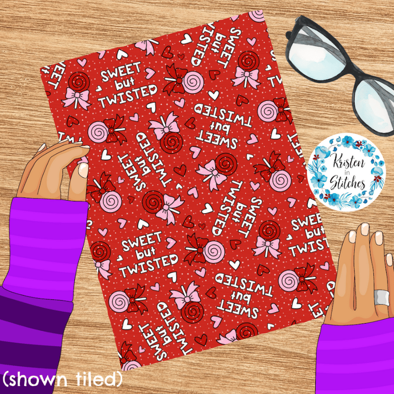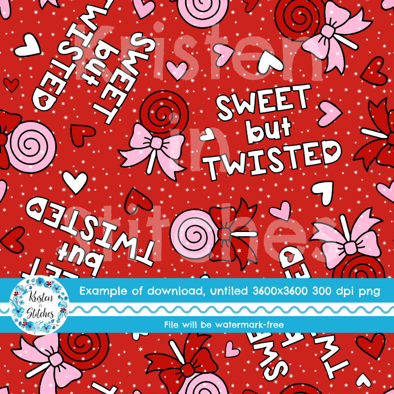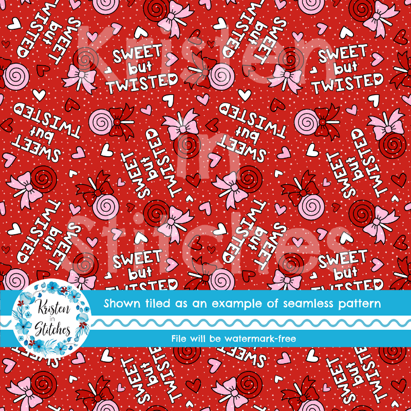 Sweet But Twisted Seamless Pattern, Valentine Lollipops Bows and Hearts