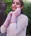 Almas Mitts feature a lovely diamond motif twisted stitch pattern on the back of the hand. I held together one strand of fingering weight yarn and lace weight mohair to create a fuzzy, soft fabric. I also made the twisted rib cuffs extra long so they can be folded up or down, depending on how warm you want them to be.