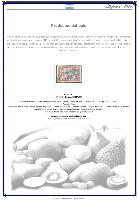 Argentina 1949 – Fruticultura (Ficha de sello AR 03985 en PDF)