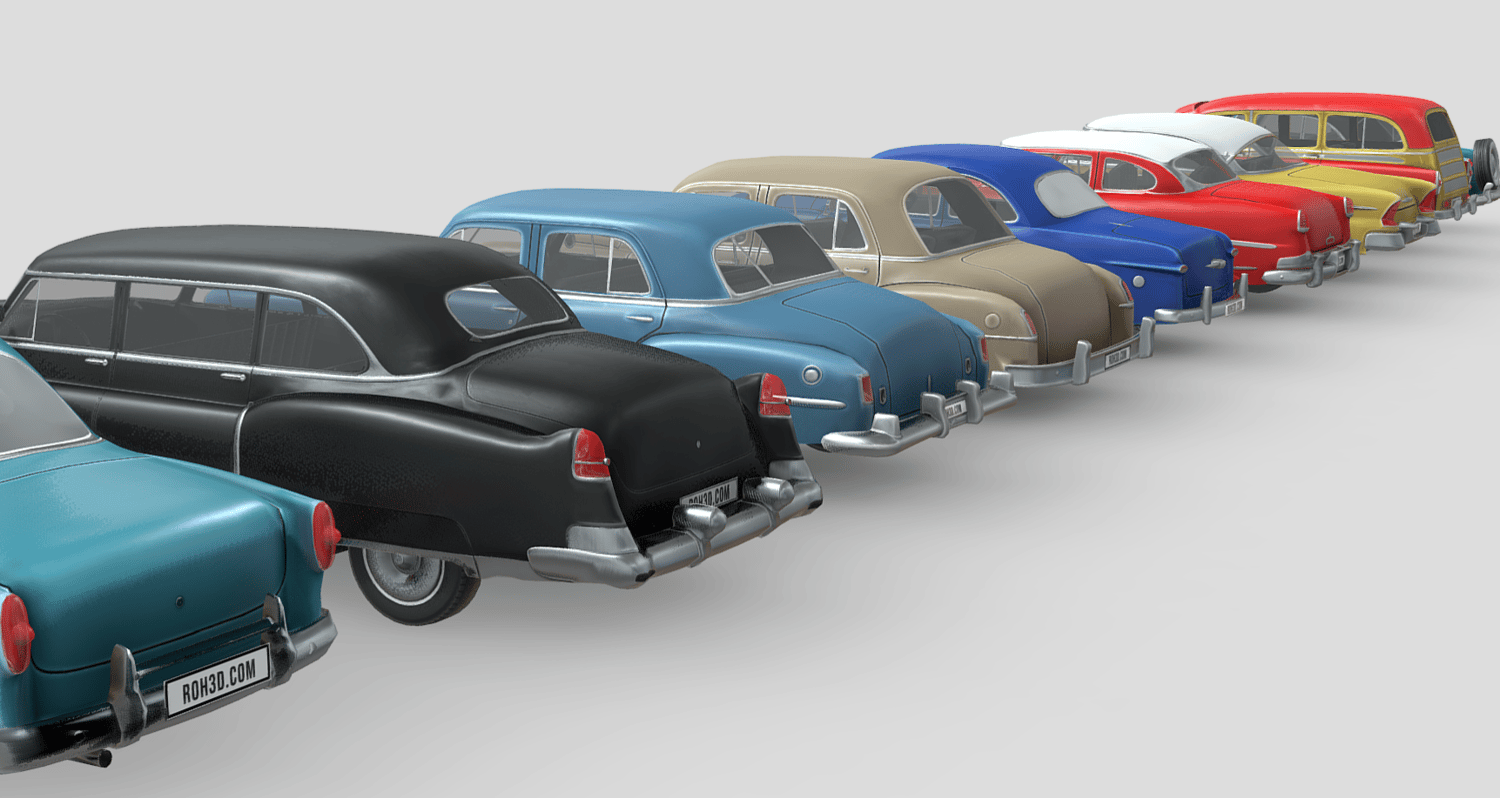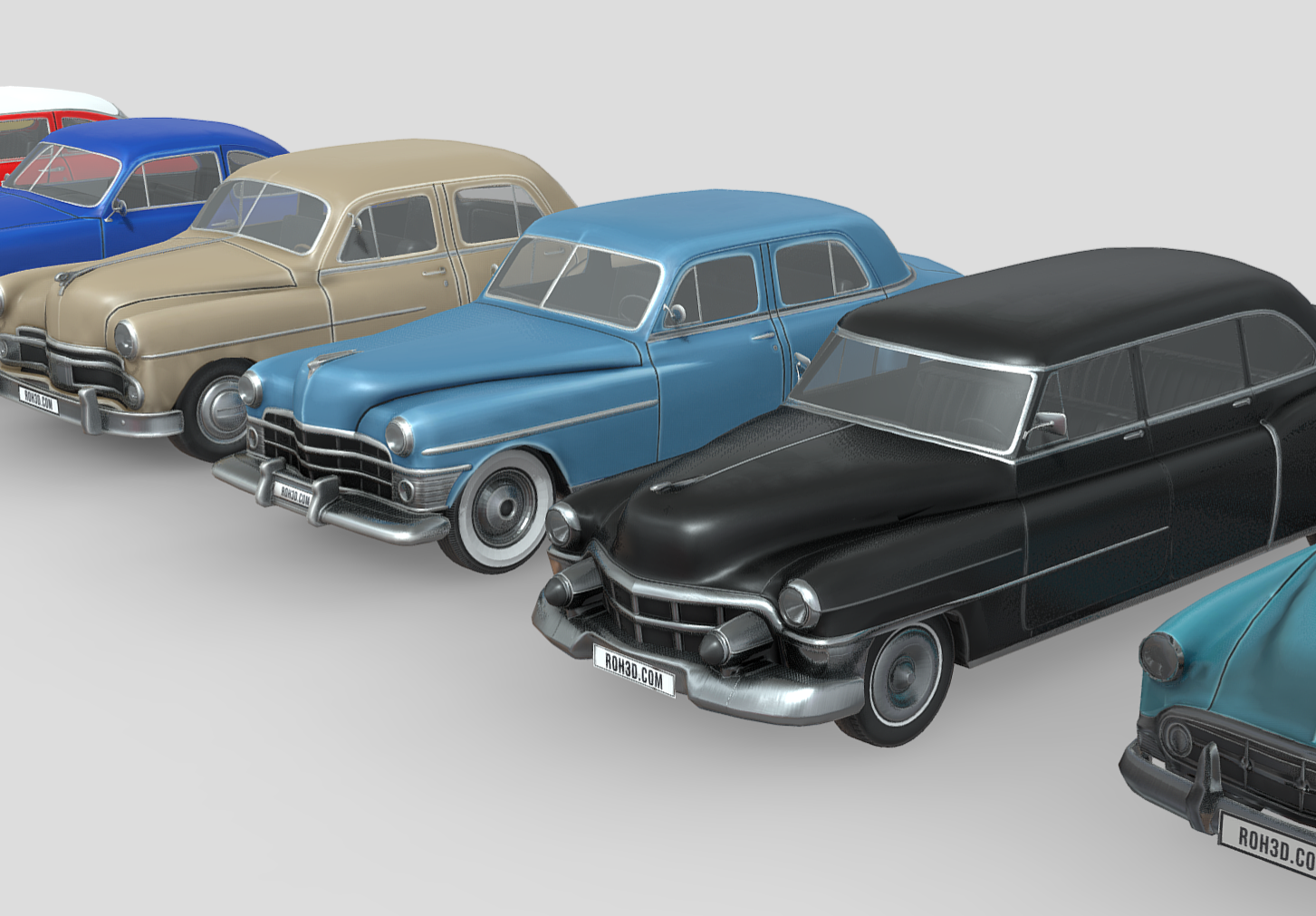 Cars included in this pack: - Cadillac 75 Sedan 1953 - Chevrolet Club Coupe 1953 - Chrysler NewYorker 1950 - Dodge Coronet Mk1 1950 - Ford Crestline Sunliner 1954 - Ford Custom Club Coupe 1949 - Hudson Hornet 1943 - Lincoln Capri Hardtop Coupe 1955 - Pontiac Chieftain Deluxe Station Wagon 1953