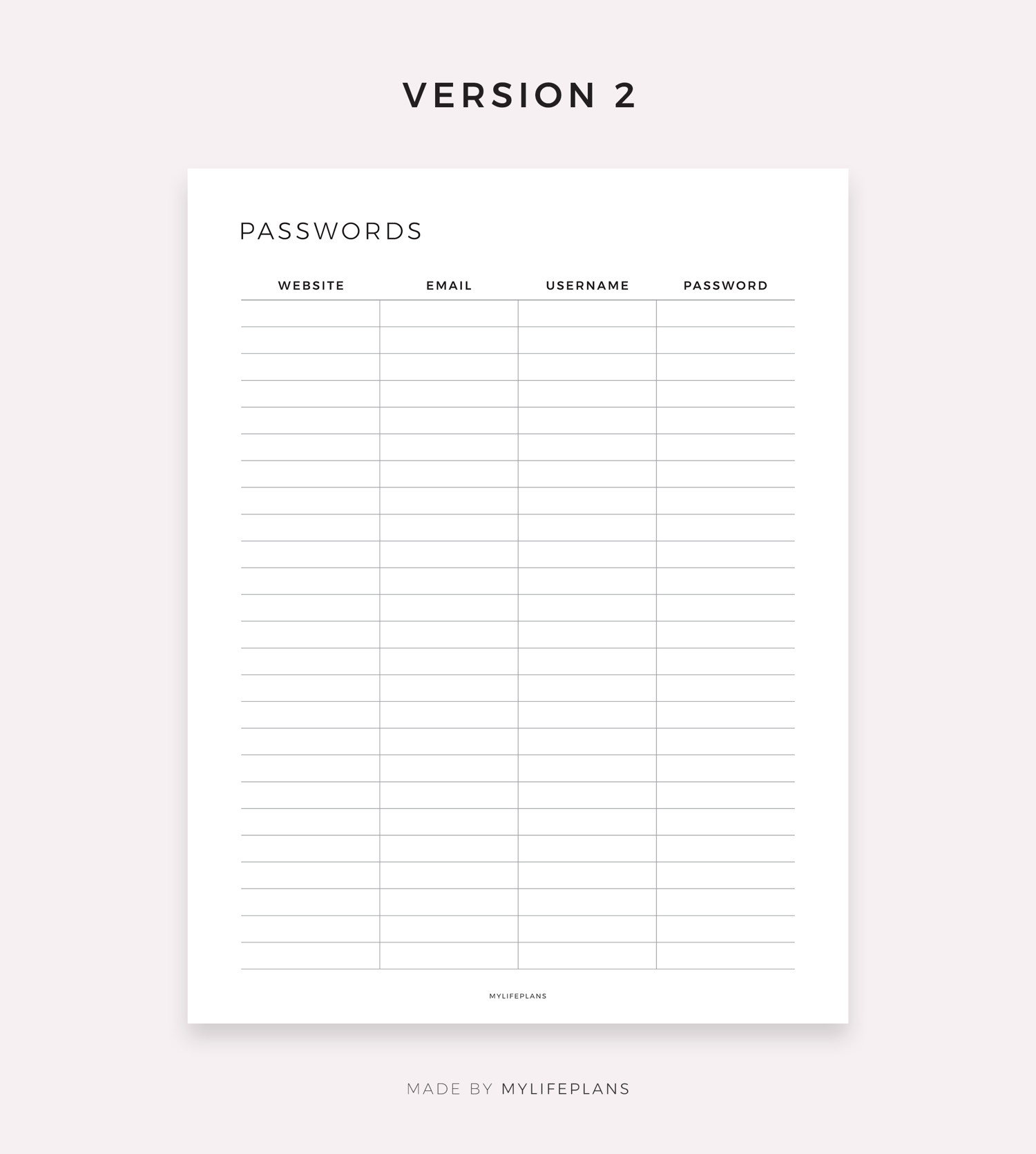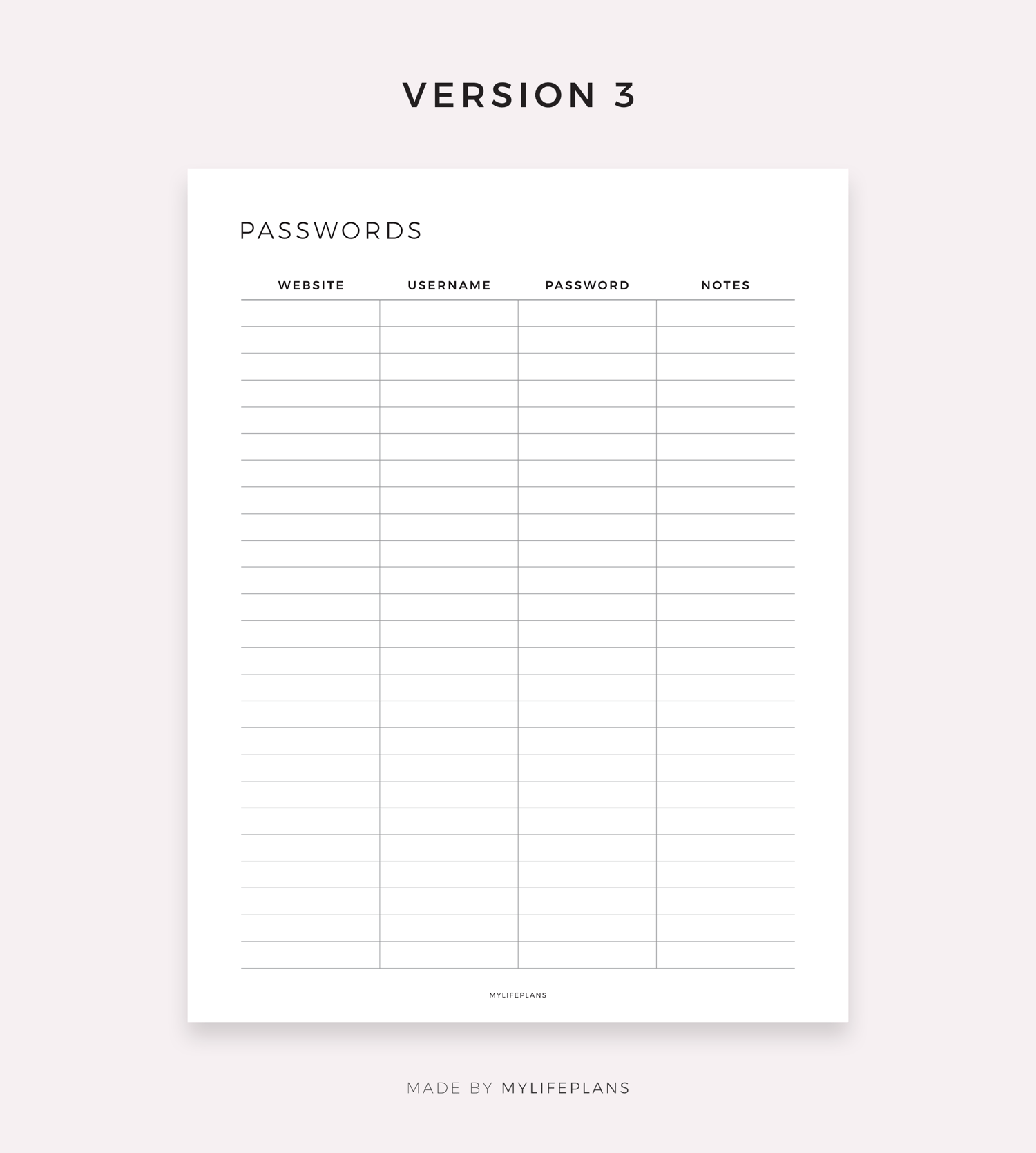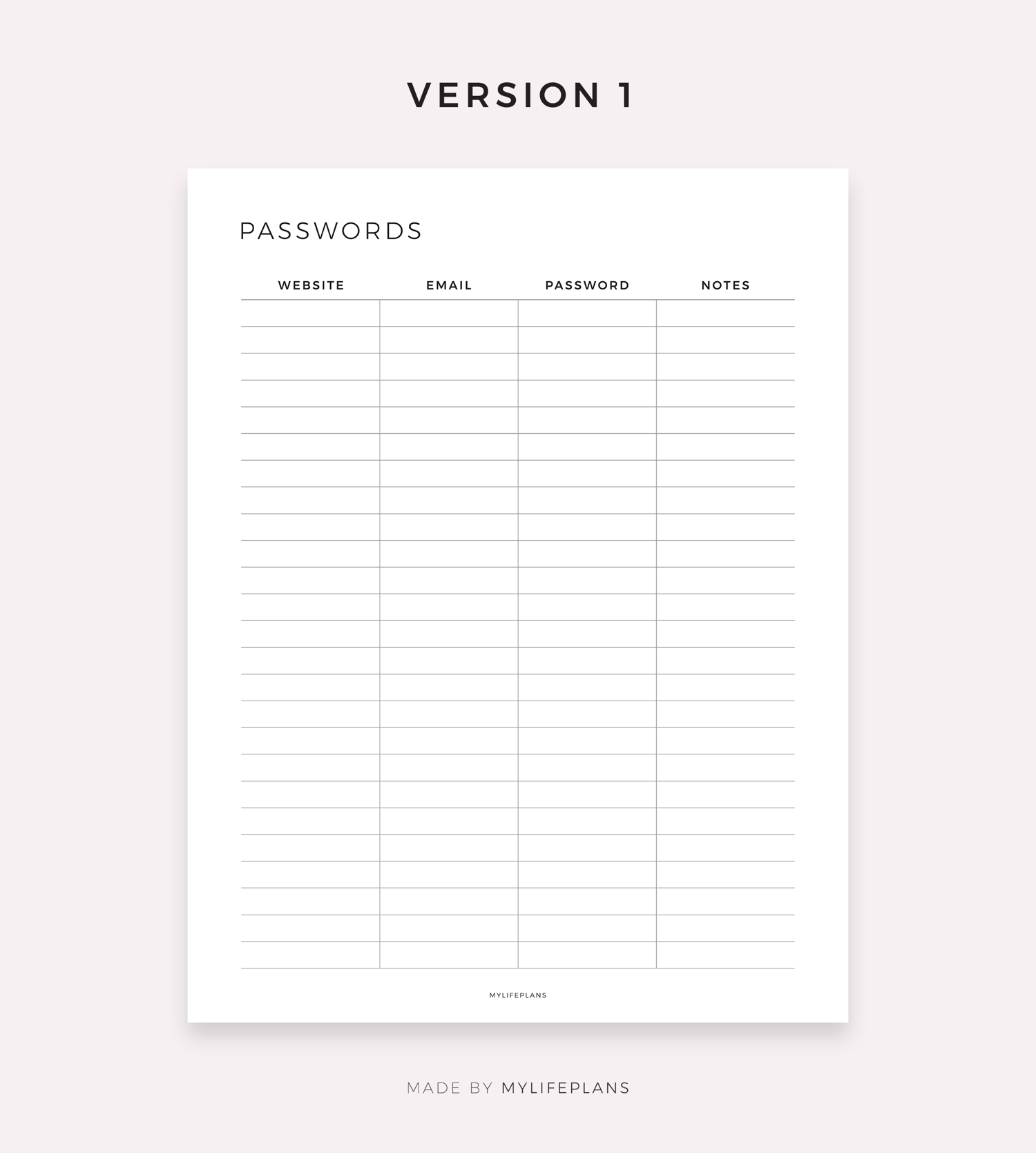 Simple Password Tracker, Digital Template for Goodnotes, Notability, Ipad