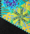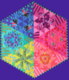 Make this Mini with my fun Triangle Patchwork technique. Each of six blocks is made up of six smaller triangle blocks, and come together to make a fun hexagonal quilt measuring 24" across from flat side to flat side.. Use it as a table topper, playmat, wall hanging, or play with the blocks in your own creation.