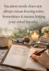 The Vacation Mode Journal invites you to embrace a peaceful, mindful retreat—without ever leaving home. Take time to reflect, breathe, and recharge as you connect with yourself. This journal offers prompts to help you find rest and creativity.