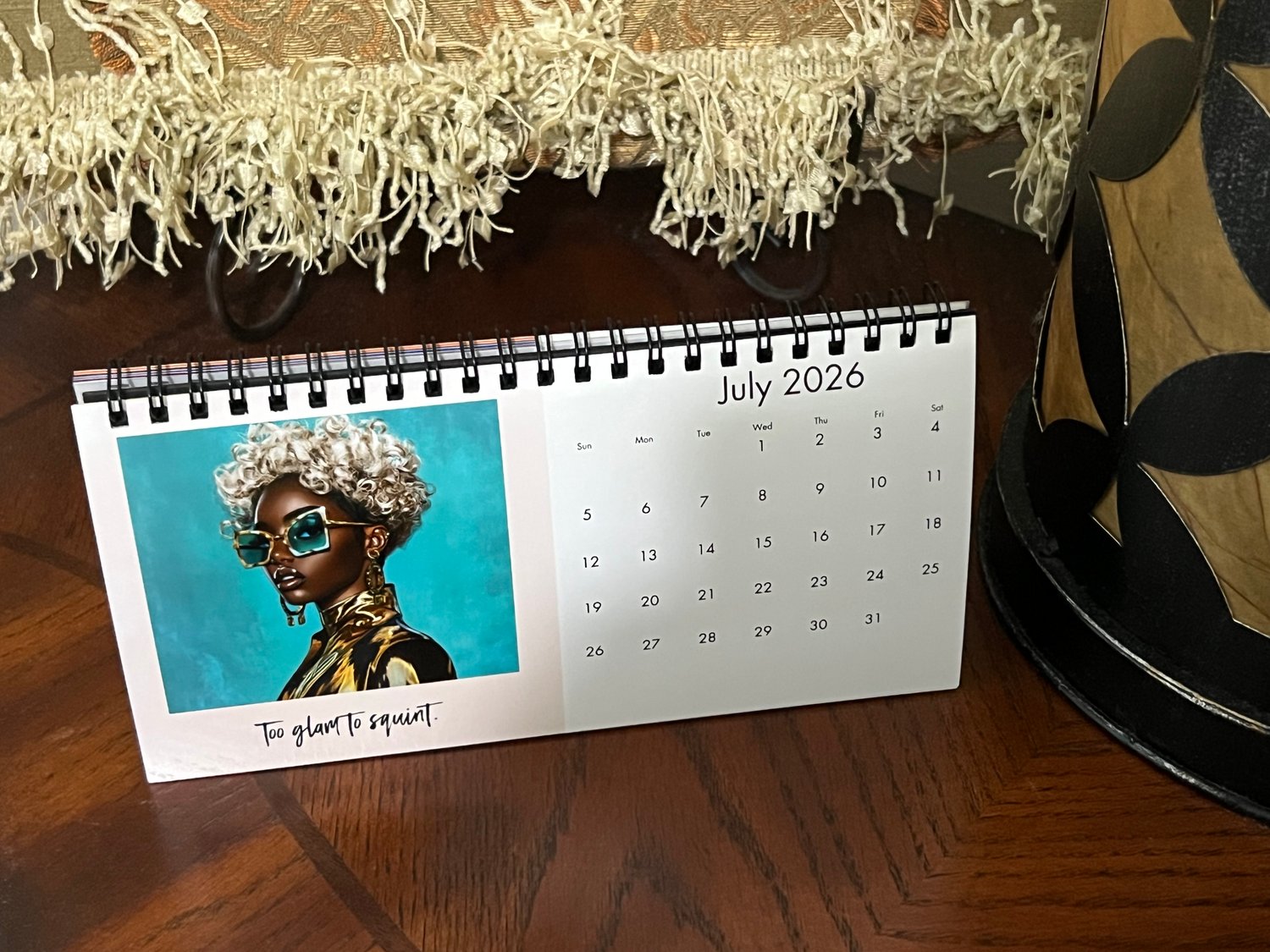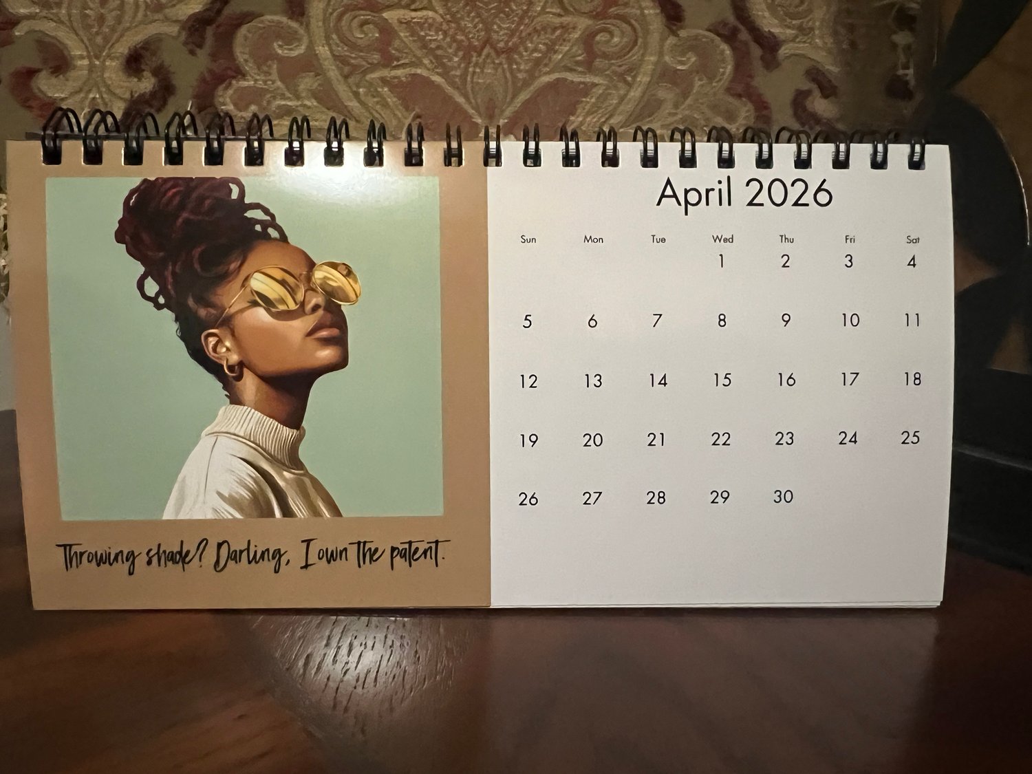 Secure your “Giving All Kinds of Shade” 2026 Desktop Calendar today — because style like this doesn’t sit on store shelves.