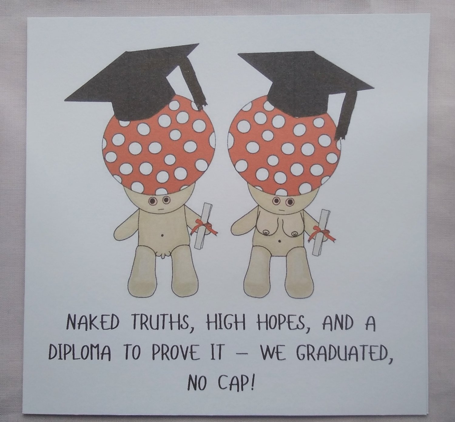 Looking for a cheeky graduation card for the new grad (18+ only)? This funny square card says it all: naked truths, high hopes, and a diploma to prove it — we graduated, no cap! Perfect for celebrating in style, sharing laughs, and marking a milestone that deserves more than just a handshake.