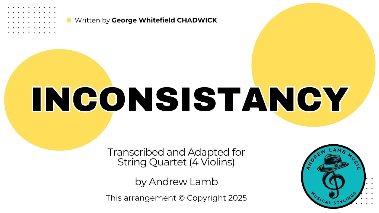This arrangement of George Whitefield Chadwick's art song Inconstancy brings the lyrical beauty and emotional depth of the original composition to life in a unique string quartet setting. Scored for four violins or a combination of violins and violas, this adaptation captures the Romantic elegance and expressive harmonies of Chadwick's work while offering flexibility for ensembles. Perfect for intermediate-level performers, this arrangement is an excellent choice for concerts, recitals, or educational settings.