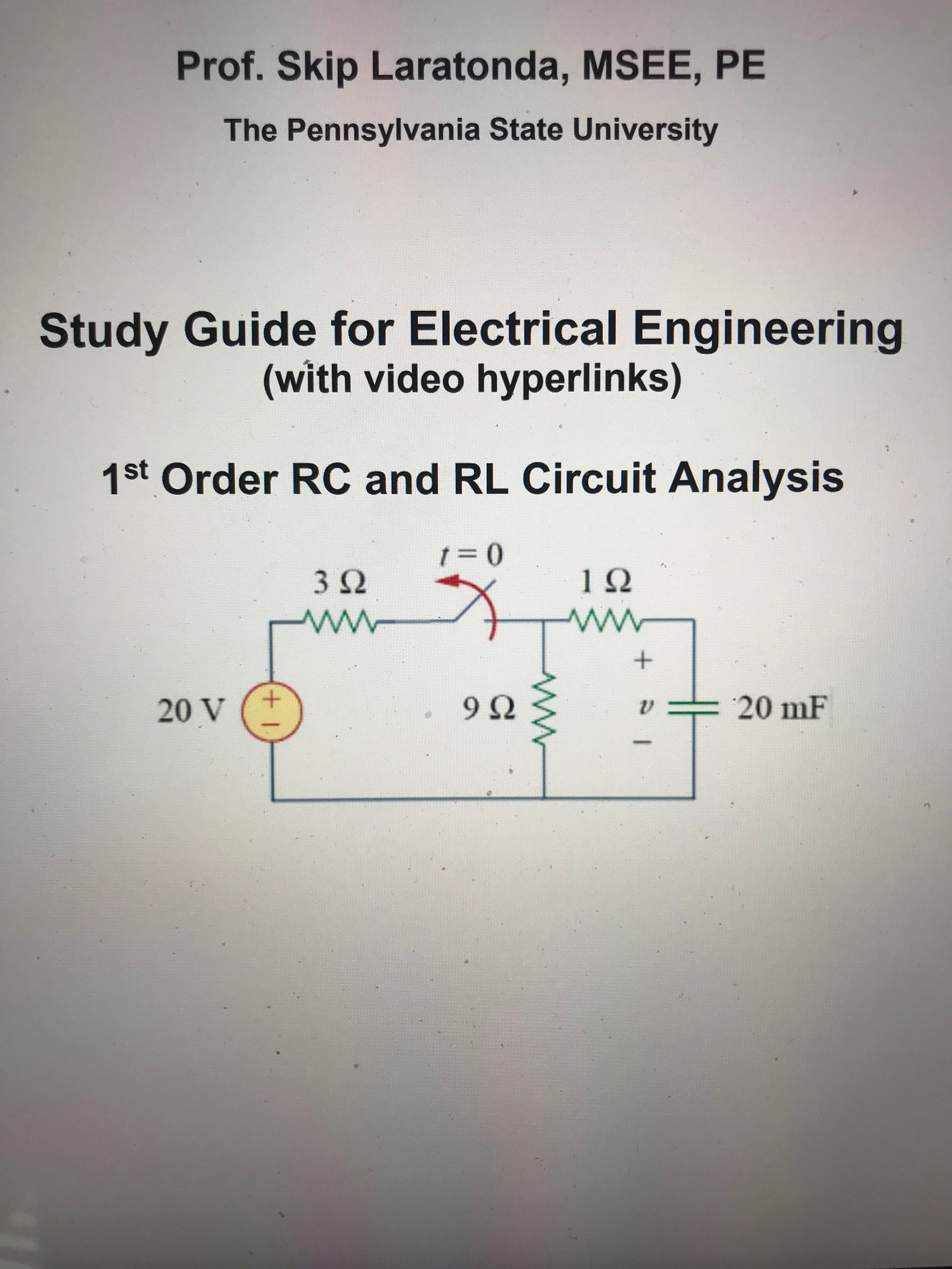 Study Guide on First Order Circuits with video hyperlinks and many solved problems.