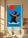 Playful Bear on Skateboard Digital Art Print | Whimsical Printable Wall Art for Kids Room or Nursery