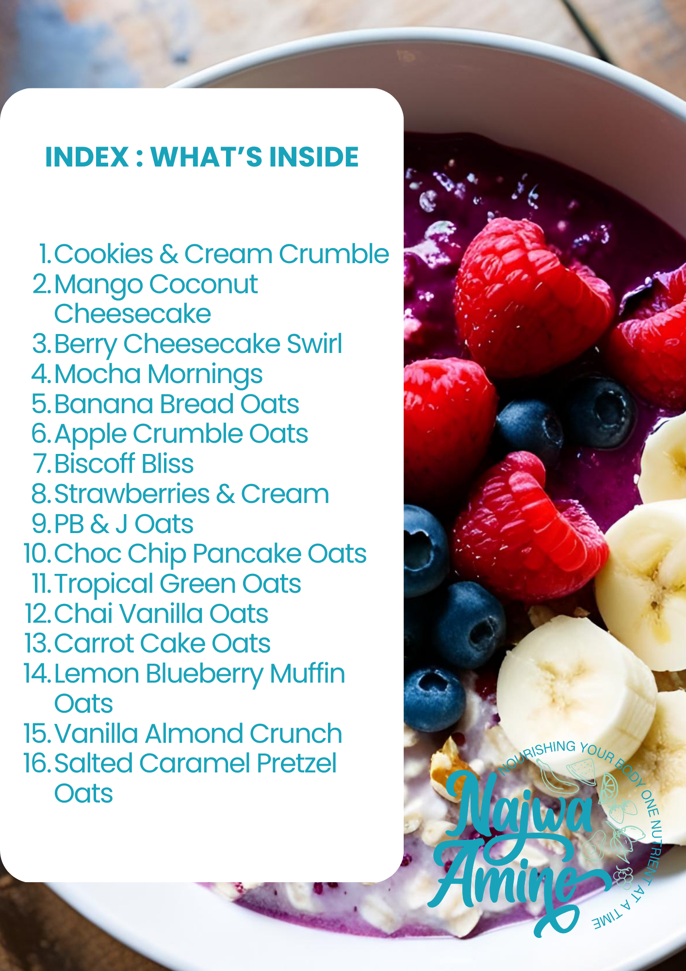 Looking for quick, delicious, and satisfying breakfasts that support your weight loss or muscle-building goals? This digital recipe book features 16 fun and easy overnight oats recipes – each one packed with at least 25g of protein per serve and balanced with carbs to keep you full and energised.