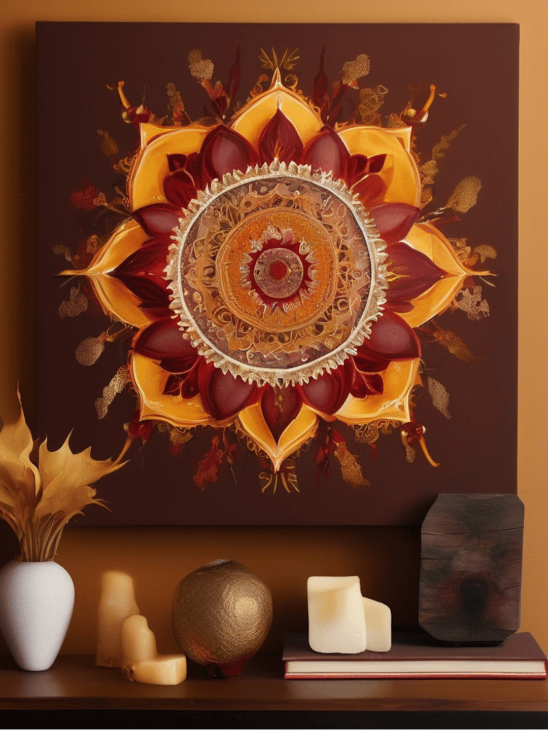 Golden harvest mandala golden harvest mandala, This painting features a charming mandala design with layers of intricate patterns radiating from the center. Png