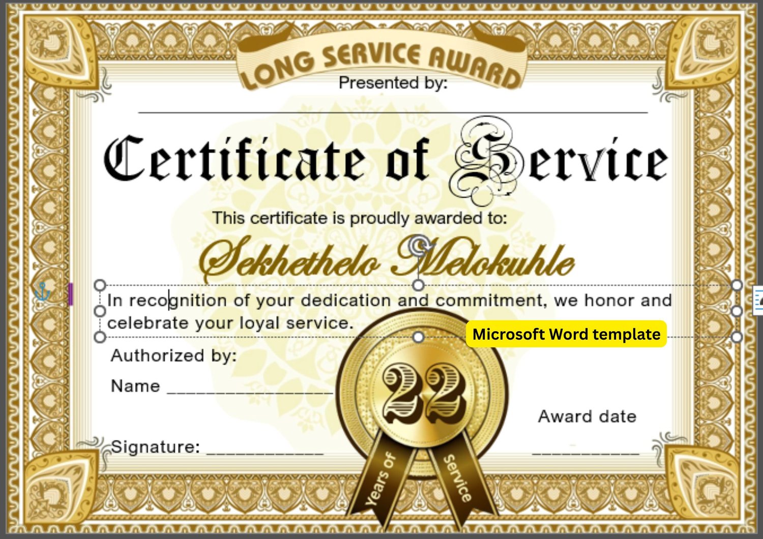 22 Years of Service - Editable Microsoft Word template with logo tailored with number of years G202L220067