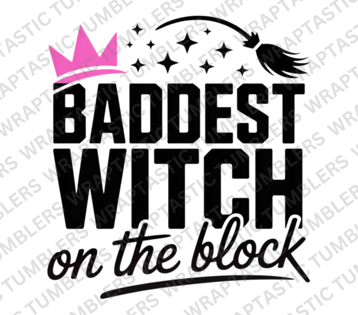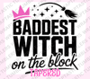 Baddest Witch on the Block PNG Halloween Witch Hat Crown Broom Sparkle Sublimation Digital Download Sassy Spooky Season Printable Design