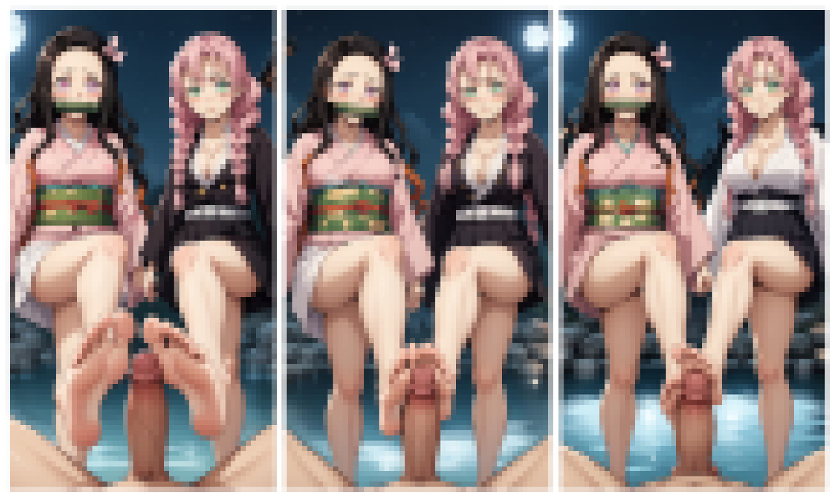 This Pack contains 21 files of Kanroji and Nezuko Doble Footjobs