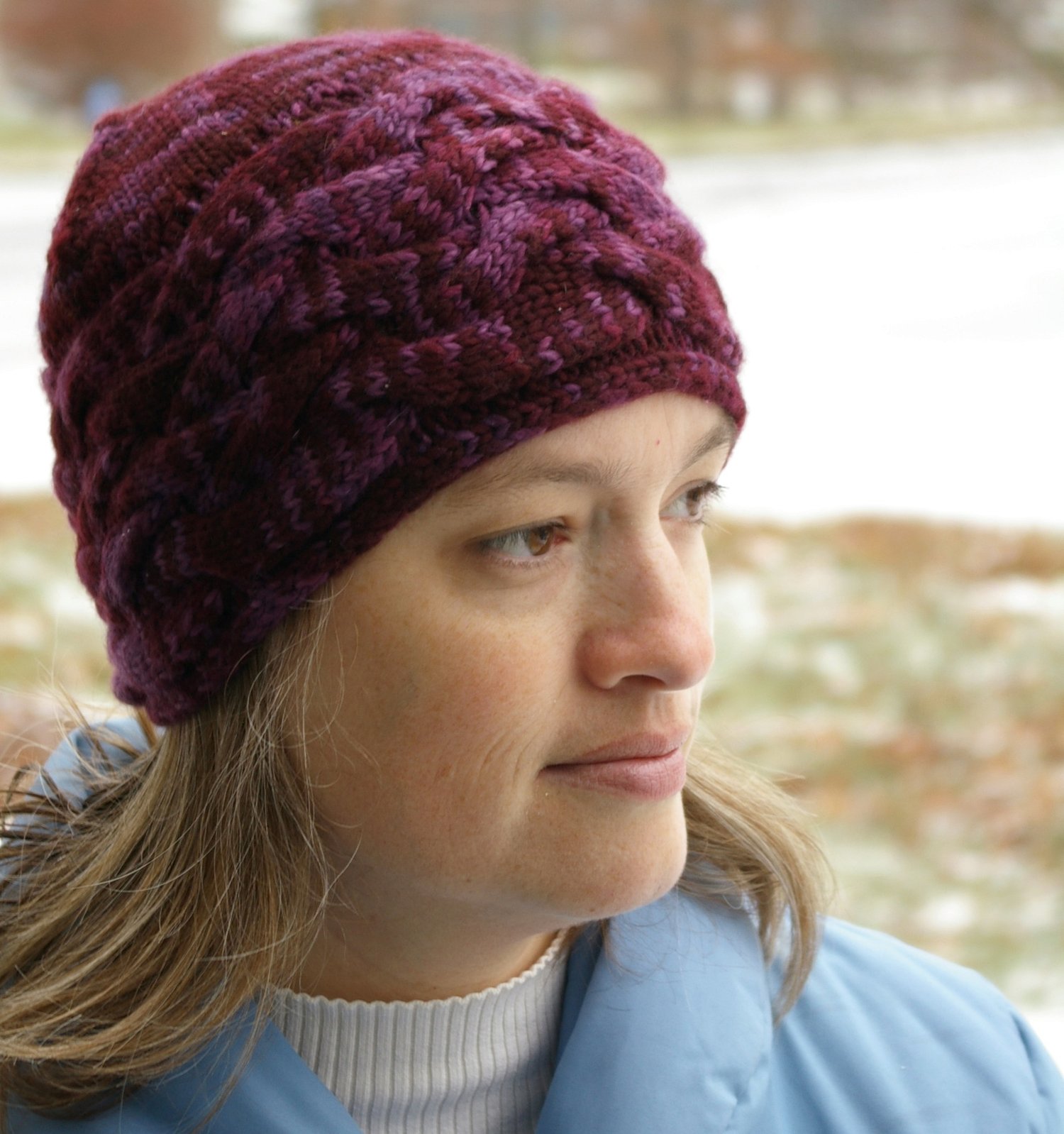 The Payden hat and mittens set is designed for knitters who love cabling but aren’t quite in the mood for cables AND shaping at the same time. In this set, the hat’s brim and the mittens’ cuffs are first knit flat with a bulky cable motif, then sewn into a band. Stitches for the crown and hand are picked up from the selvedge of this cabled band and knit in the round. The hat and mittens are both decreased along two sides instead of in a circle; this allows the mittens to fit more comfortably on the hand and the hat to lay flat (as well as to mimic the mittens). Instructions for the mittens are mirrored so that the seam for the cuff lays under the wrist and the cables are mirrored.
