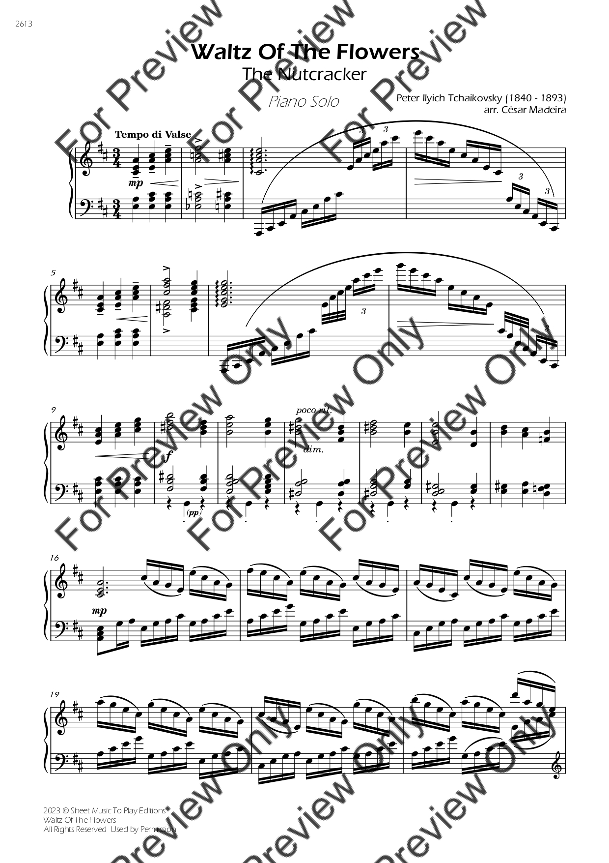 Waltz Of The Flowers (from The Nutcracker) by Pyotr Tchaikovsky. Arrangement for Advanced Piano. With Full Score. Have fun!