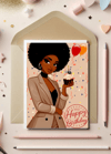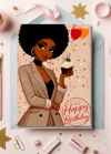 Glamorous Black Girl Birthday Card | Digital Download | Afrocentric Art | Professional & Festive | Instant E-Card for Her