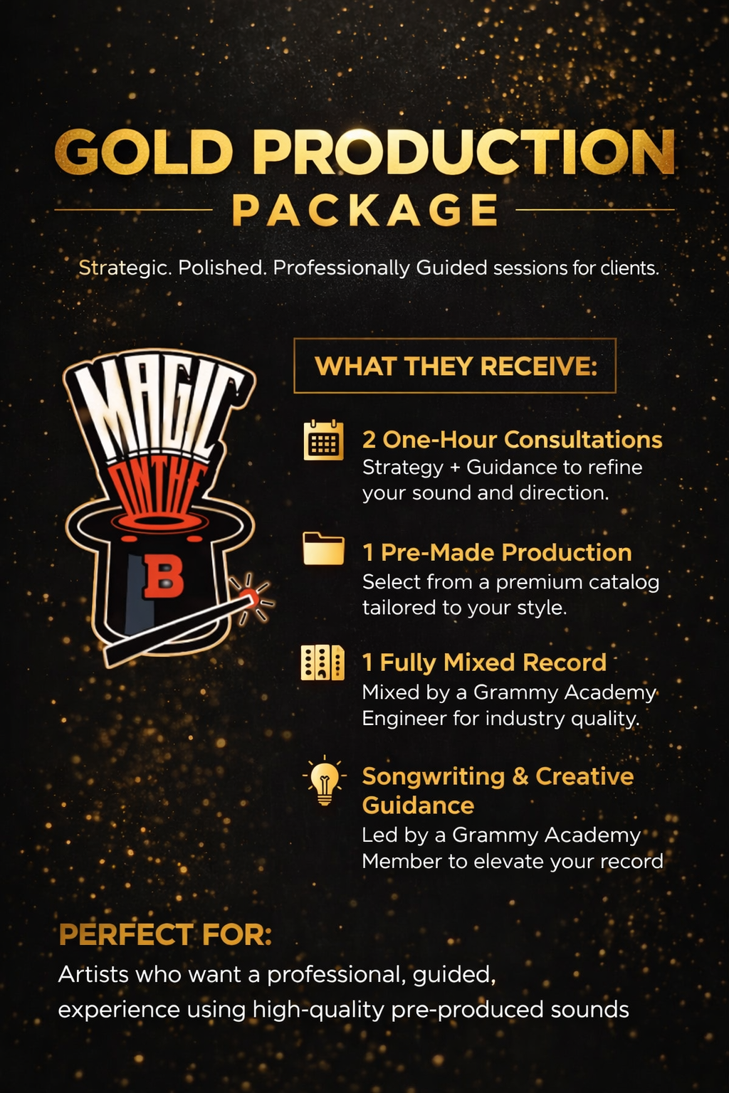 Designed for artists who want a professional sound with strategic direction and hands-on guidance.