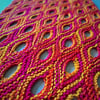 It is a very repetitive pattern and only needs one 100 gram skein of lace weight yarn, so therefore it is a very portable project. However, you should be comfortable with short rows, binding off and casting on within a row, so it is not a beginner pattern.