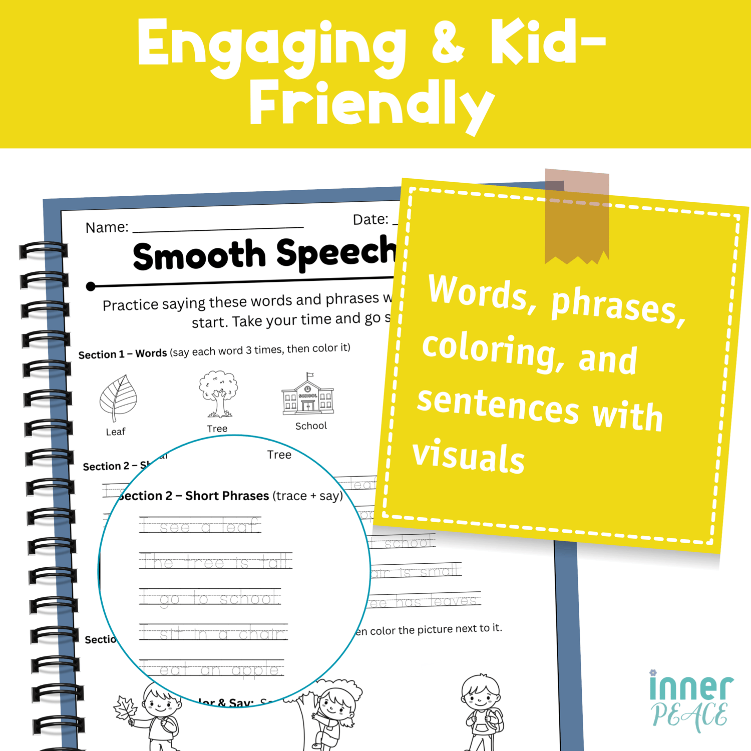 These engaging stuttering worksheets provide structured, kid-friendly practice with words, phrases, sentences, and coloring activities that make speech therapy fun at home or in the classroom.