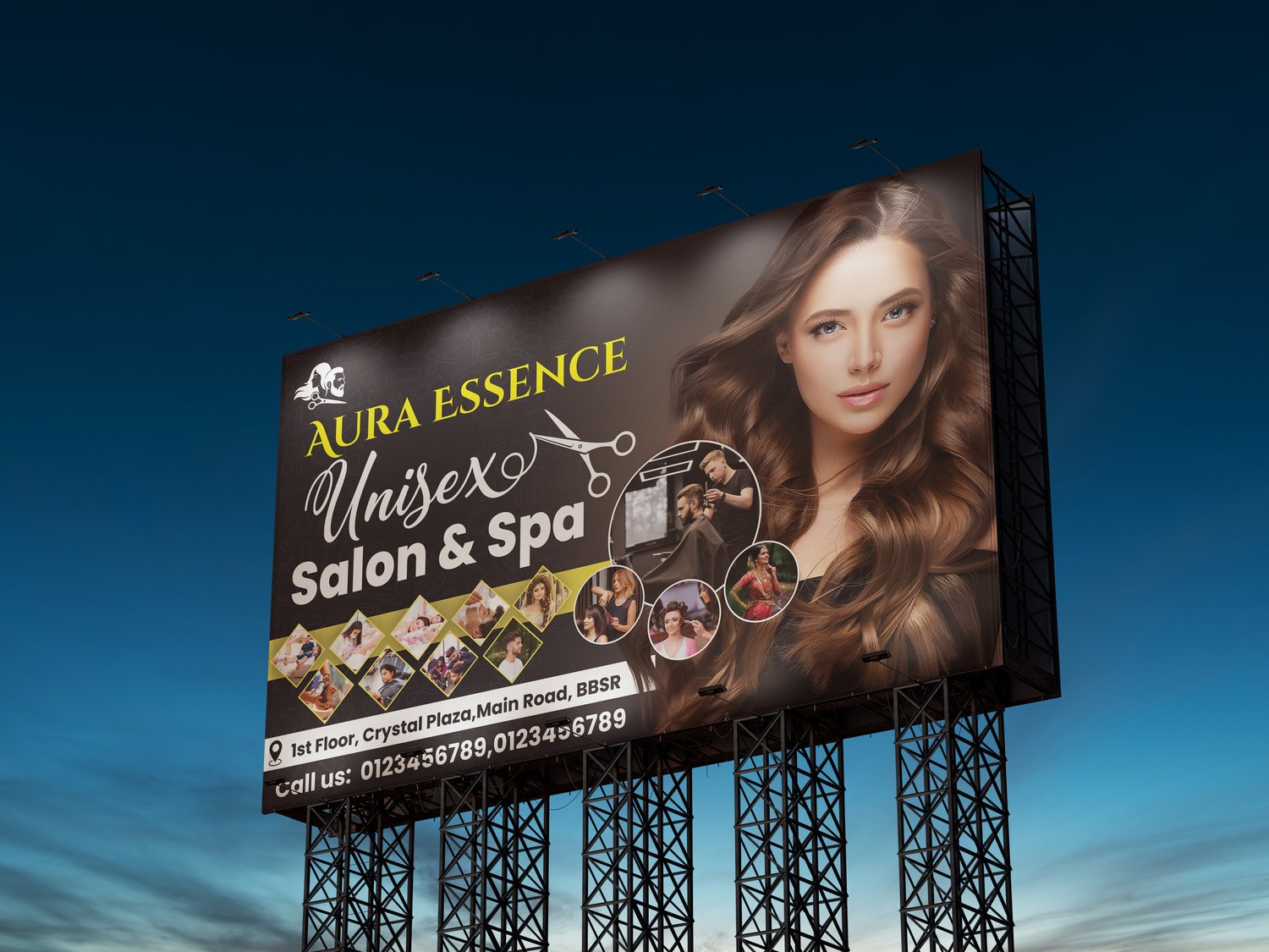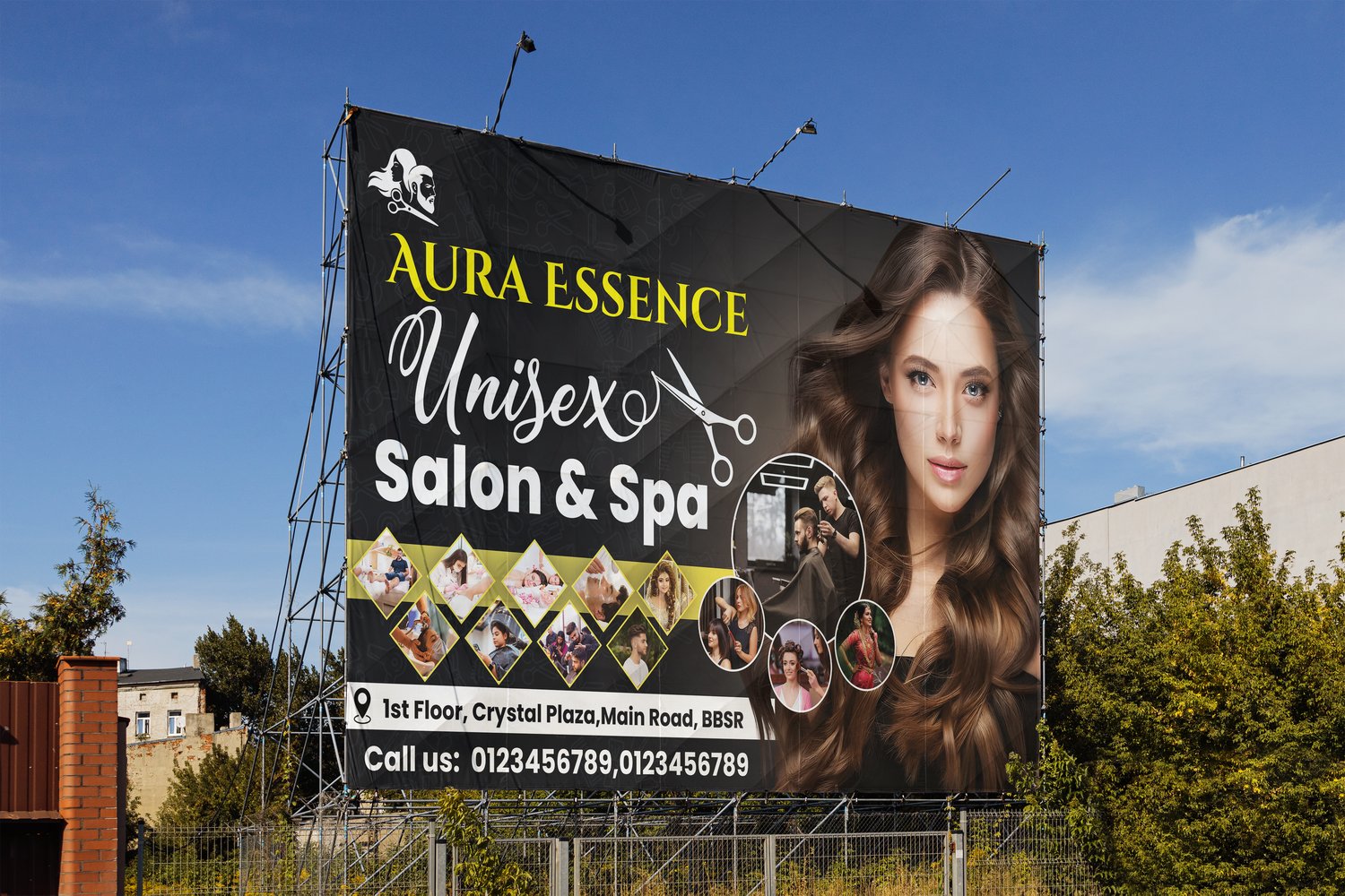 Upgrade your salon branding with this Unisex Salon & Spa Hoarding PSD Template.