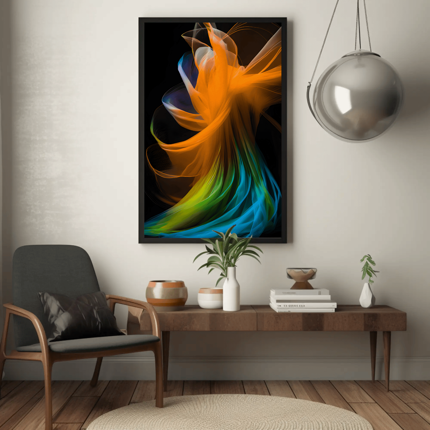 This product is a vibrant and eye-catching wall art that features colorful fabric like design against a black background. It is designed to enhance the aesthetic appeal of any room, adding a touch of uniqueness and creativity. The combination of vibrant colors and the contrasting black background creates a visually striking piece that will instantly draw attention. Perfect for adding a pop of color and personality to your space, this wall art is a must-have for those who appreciate modern and artistic decor.