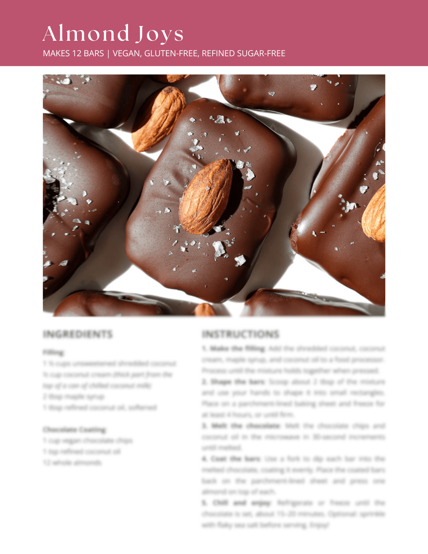 Are the recipes vegan? Yes! All of the recipes are vegan, gluten-free, and naturally sweetened with wholesome ingredients — no refined sugars, dairy, or animal products.